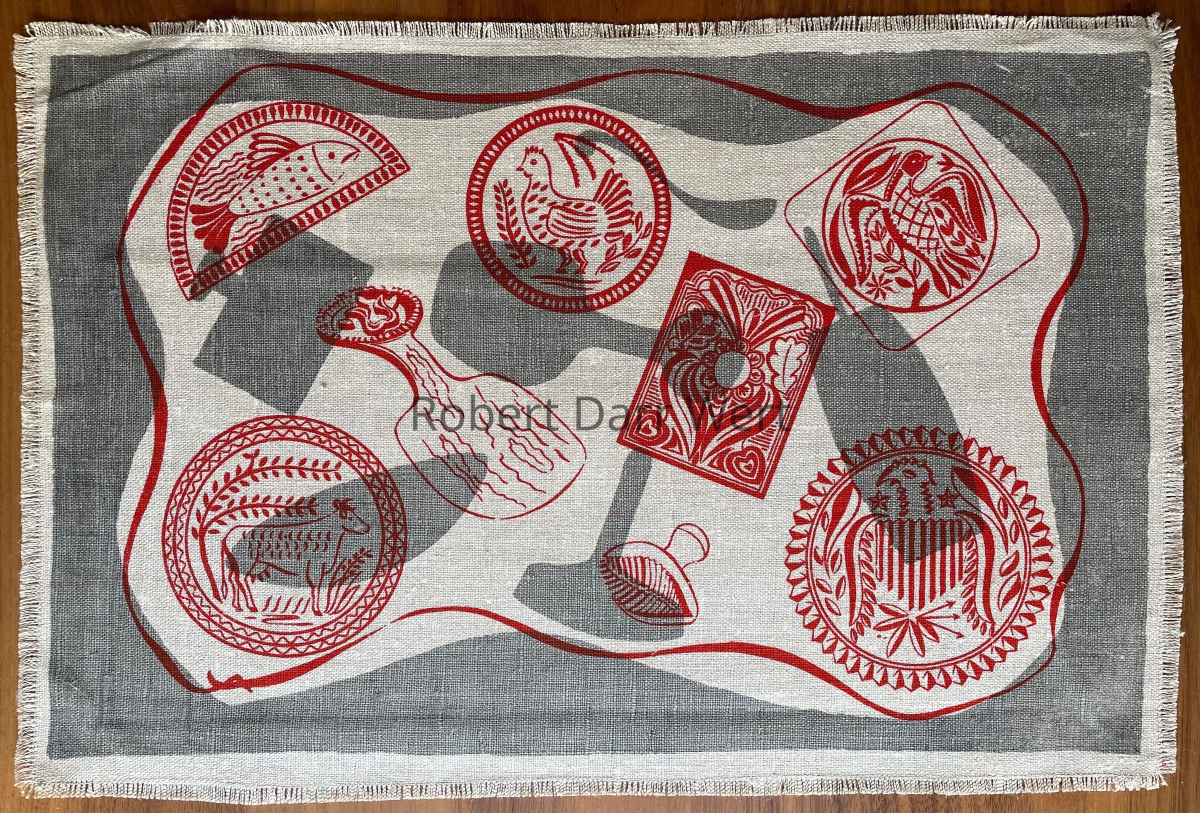 Placemat: Buttermold 117, c.1949, Two-Color, Gunmetal & RedDescription