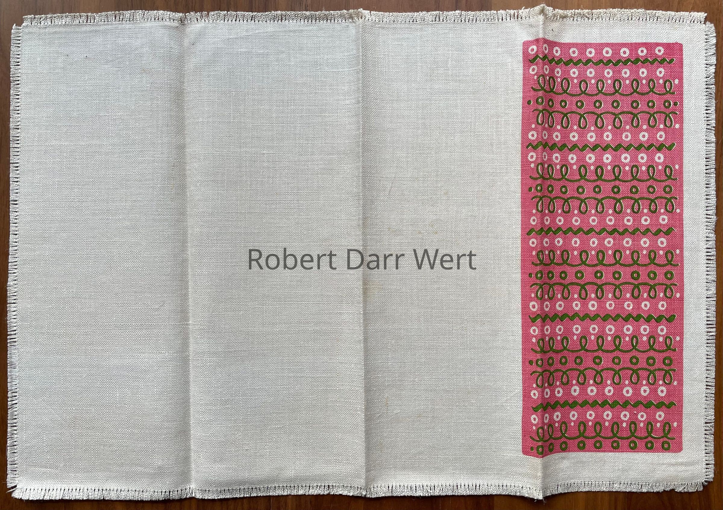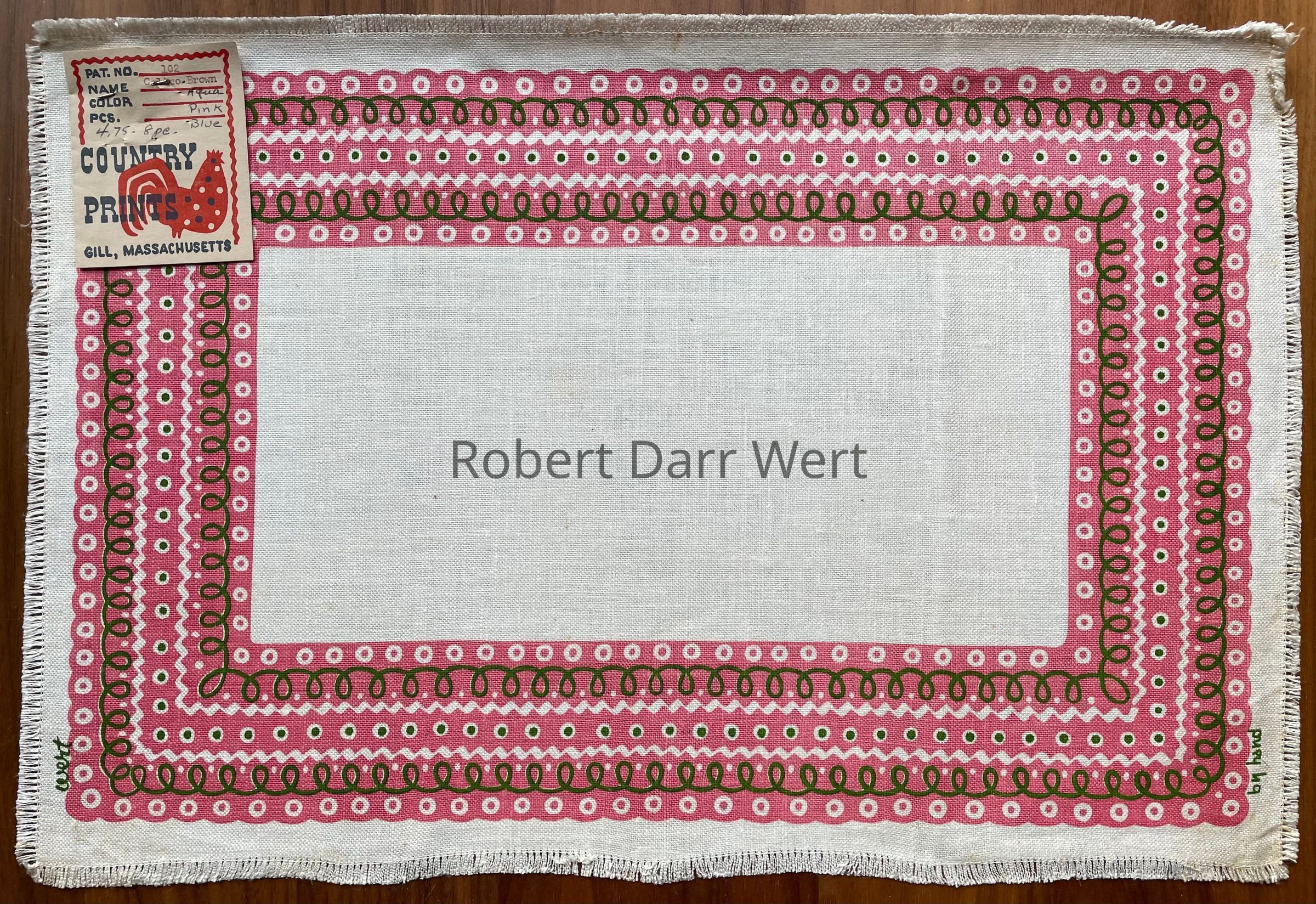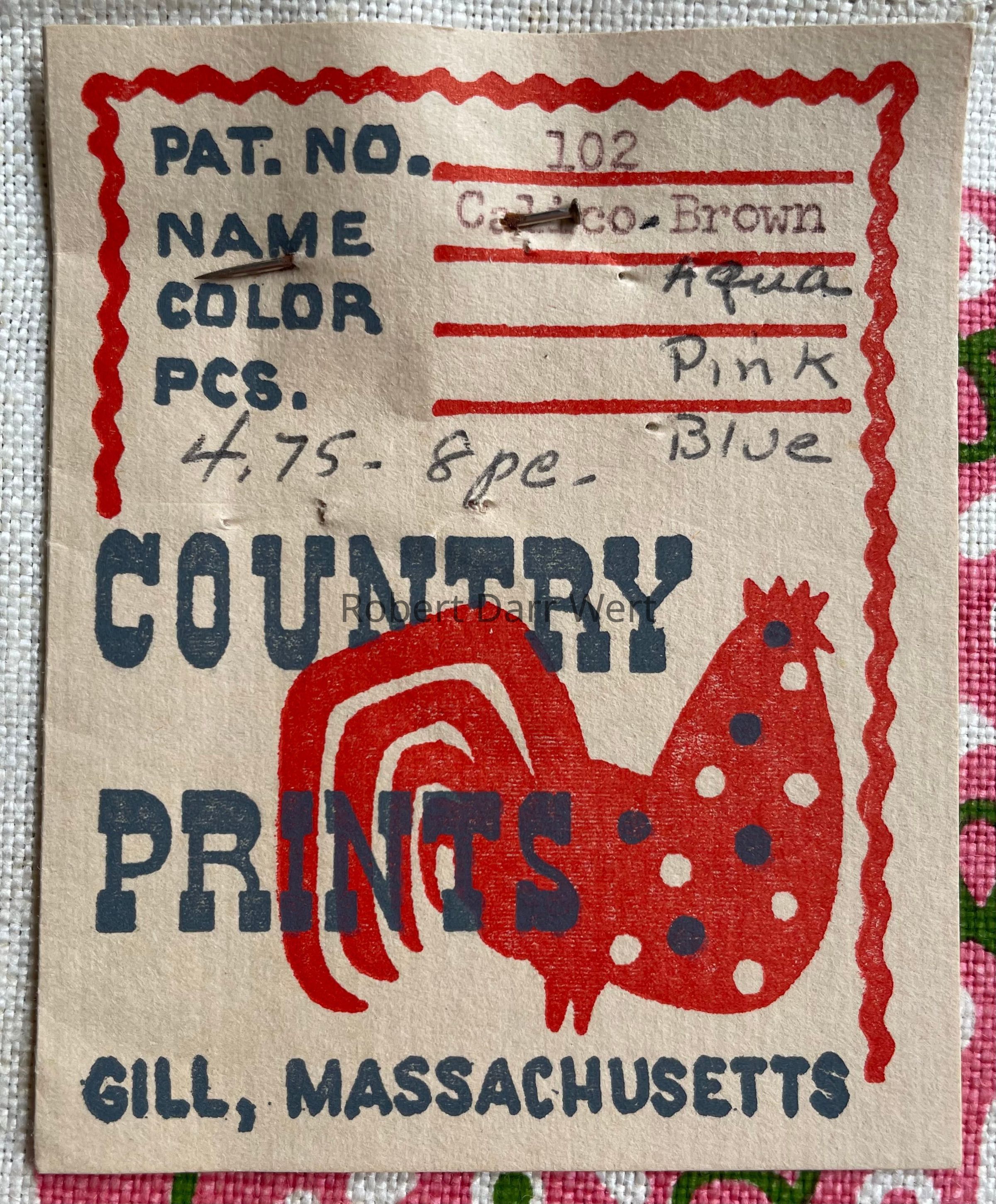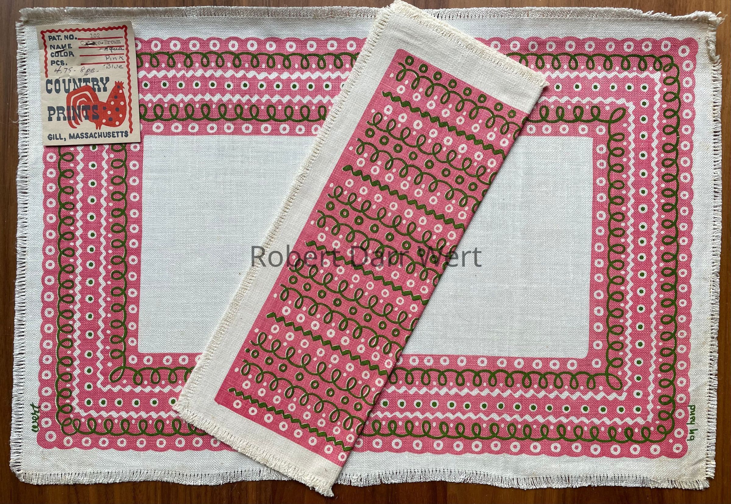 This placemat set is listed on the Spring 1958 Country Prints price list in four colorways: brown, aqua, pink, or blue.