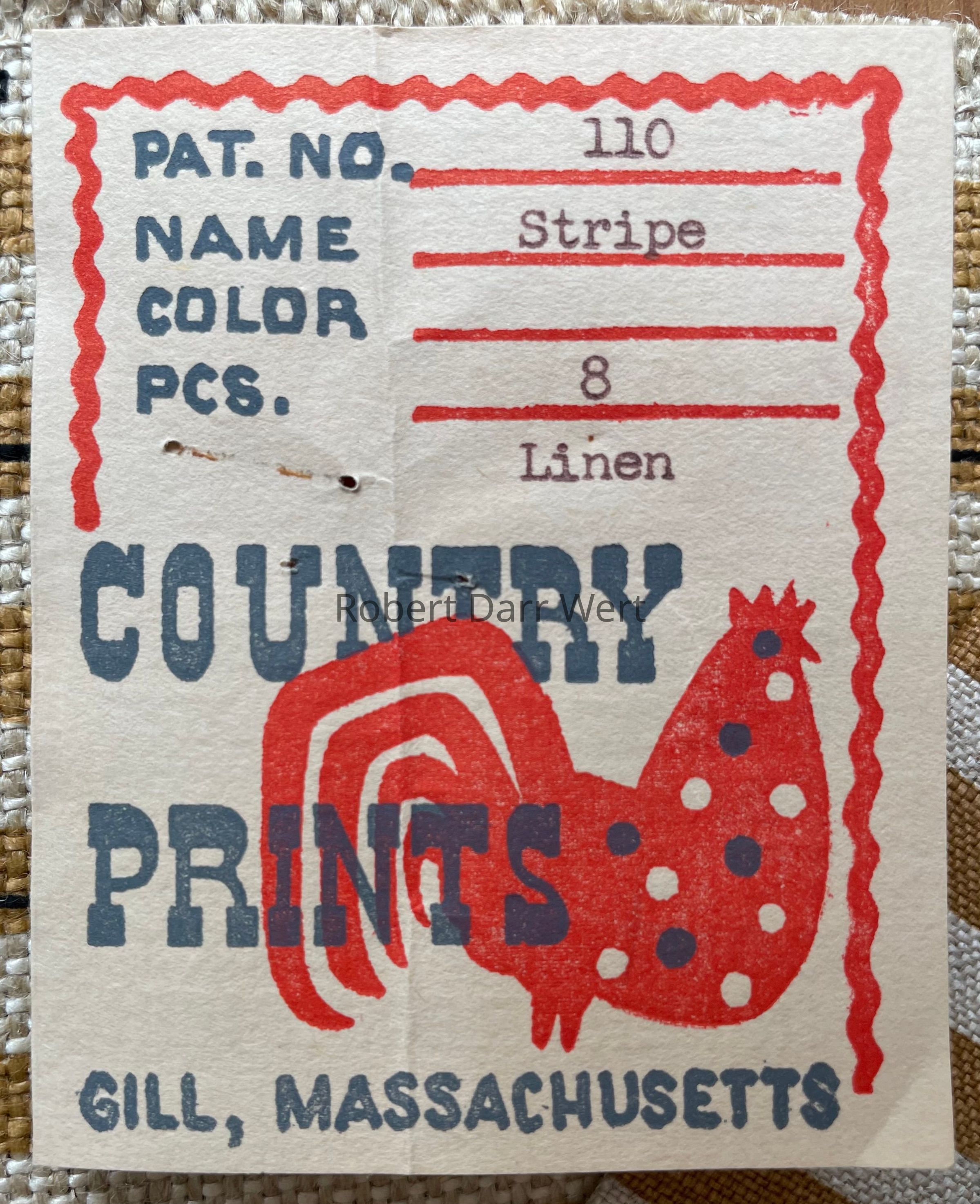 Napkin: a one-color silkscreen print on fine-weave natural linen. Pattern is stripes.