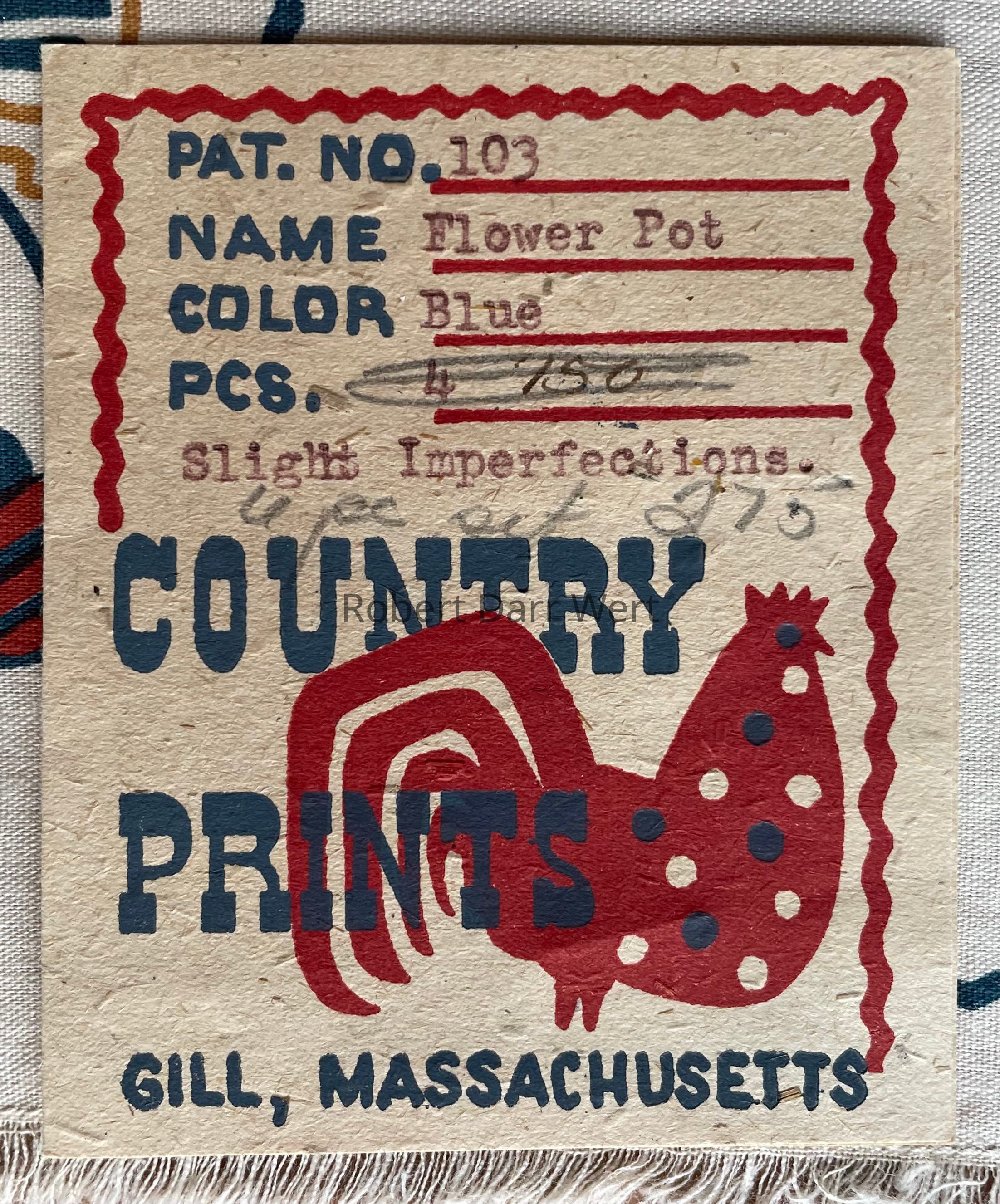 This design is an update of one by the same name first produced c.1949. It is listed on a c.1951 Country Prints packing slip.Made/Created