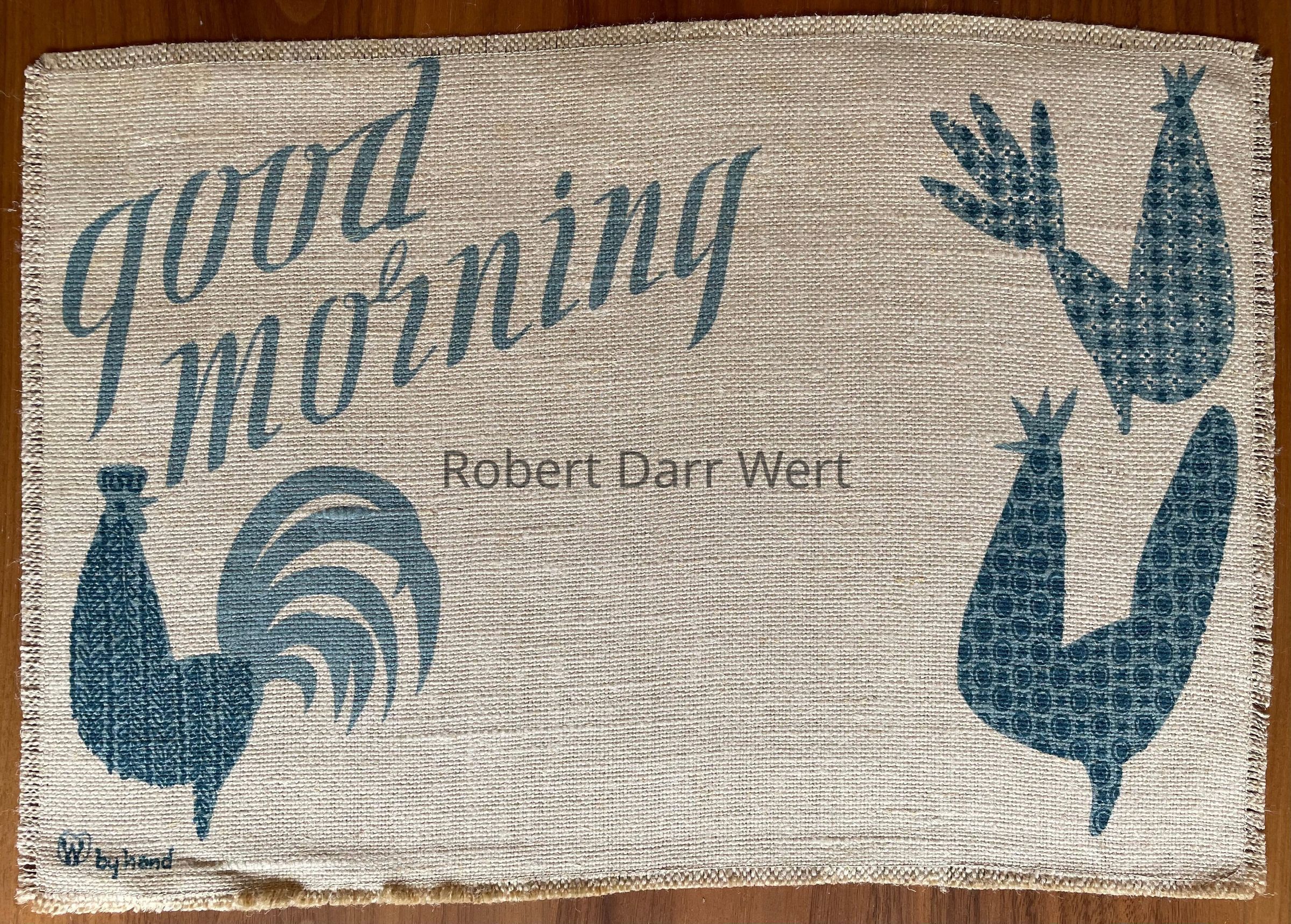 Placemat: “w“ in heart, and “by hand”, lower left corner.