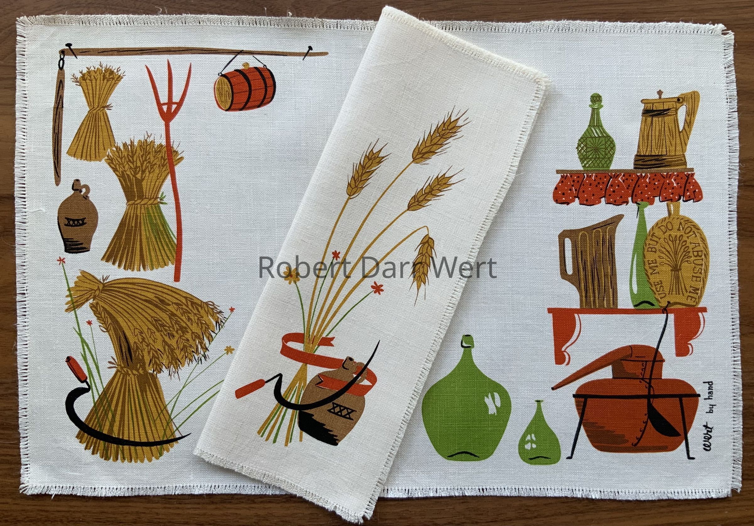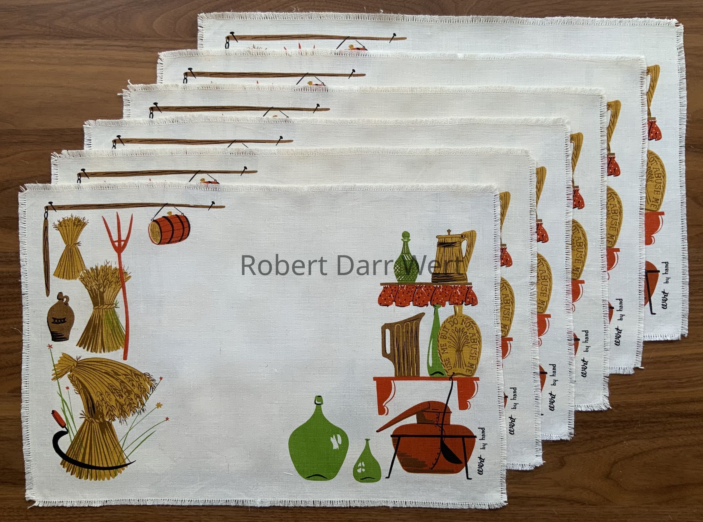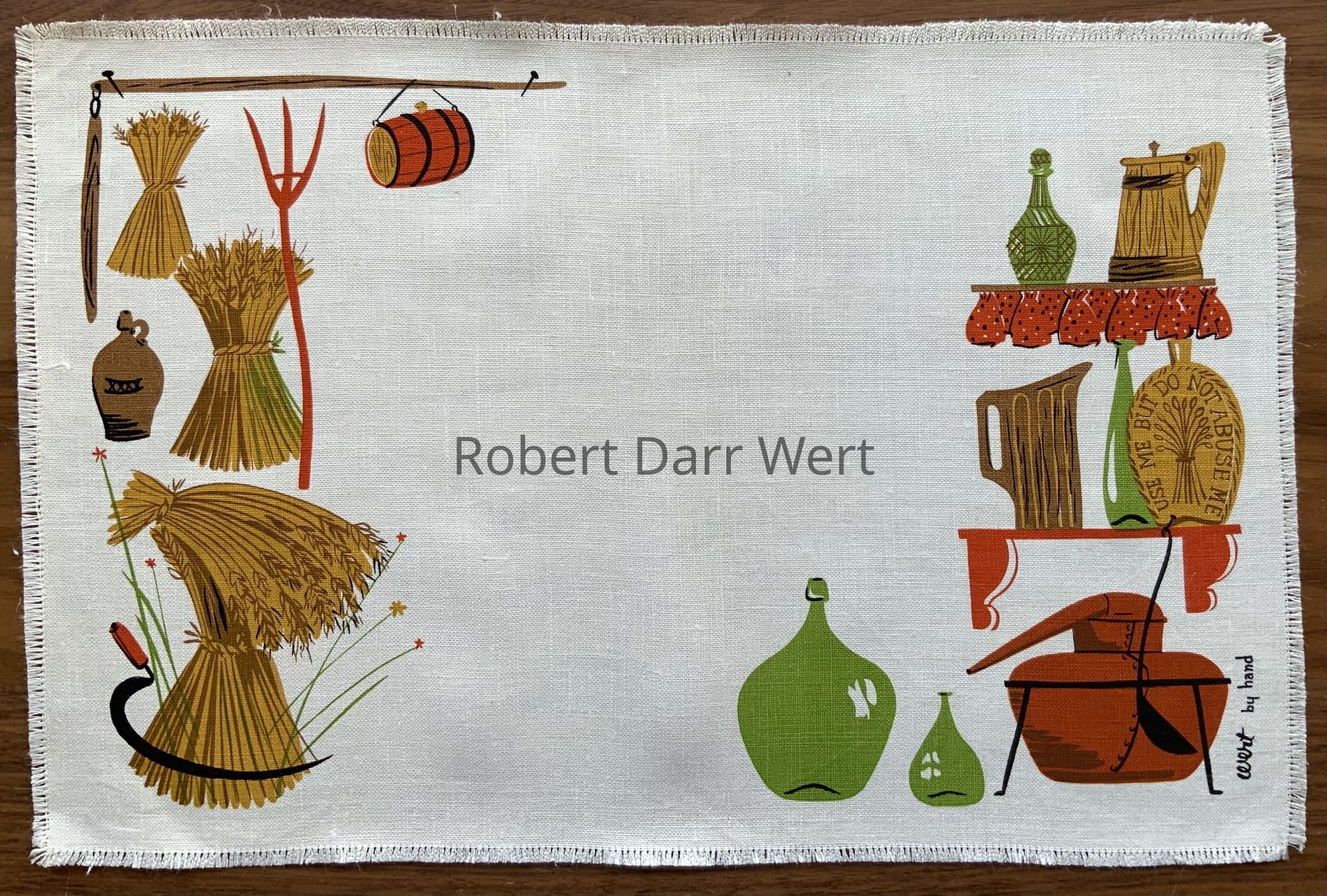 Placemats: “wert by hand”, lower right corner.