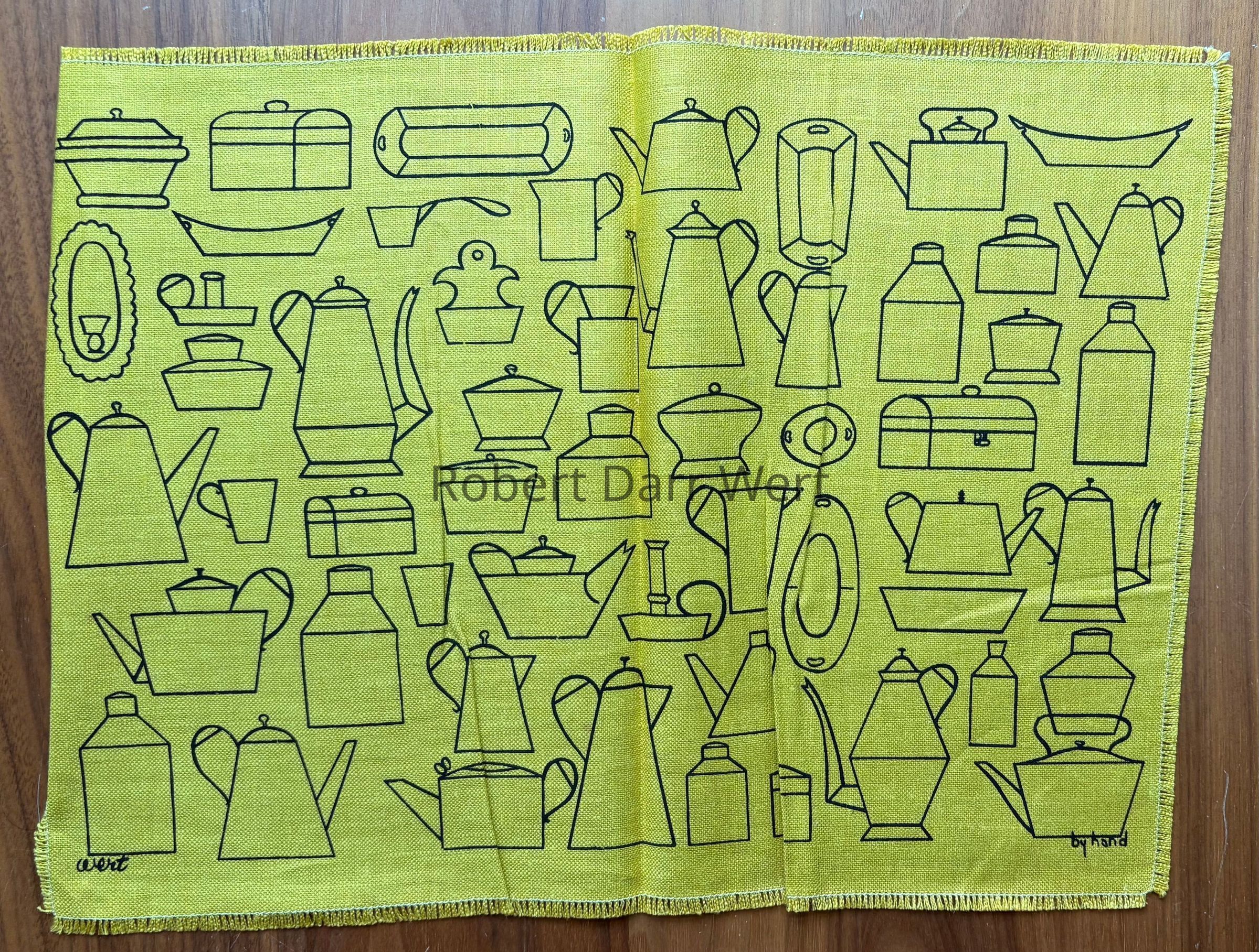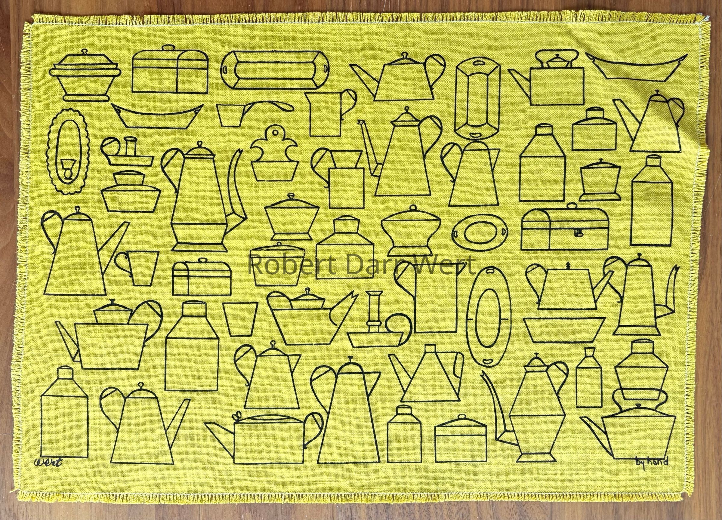 The complete placemat set appears in the c.1955 brochure “Country Prints Mat Sets and Luncheon Squares by Robert Darr Wert”; see images.