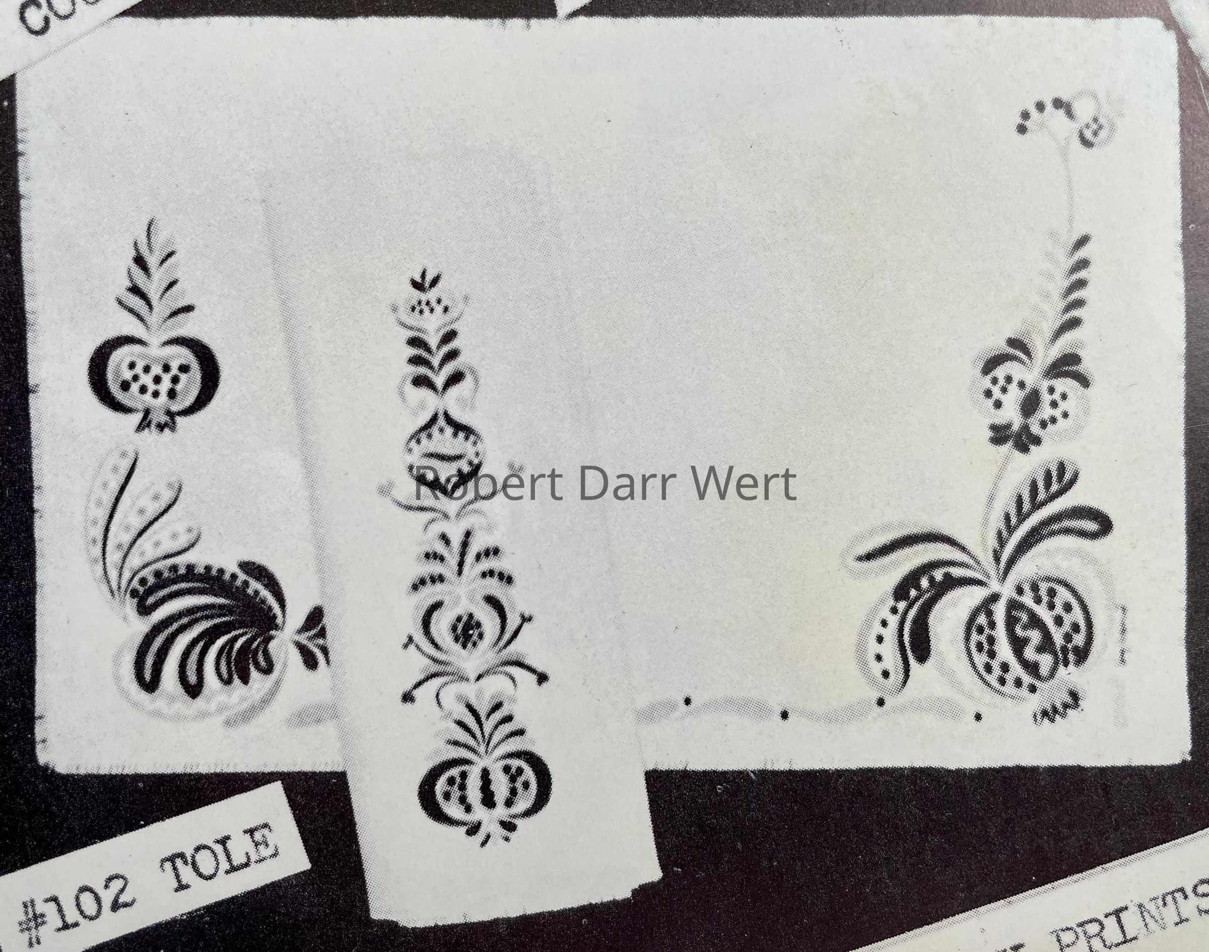 This placemat set is listed on the January 1960 Country Prints price list in three colorways (pink, blue, or green), and appears in the c.1960 brochure “Mat Sets by Robert Darr Wert/Country Prints”; see images.