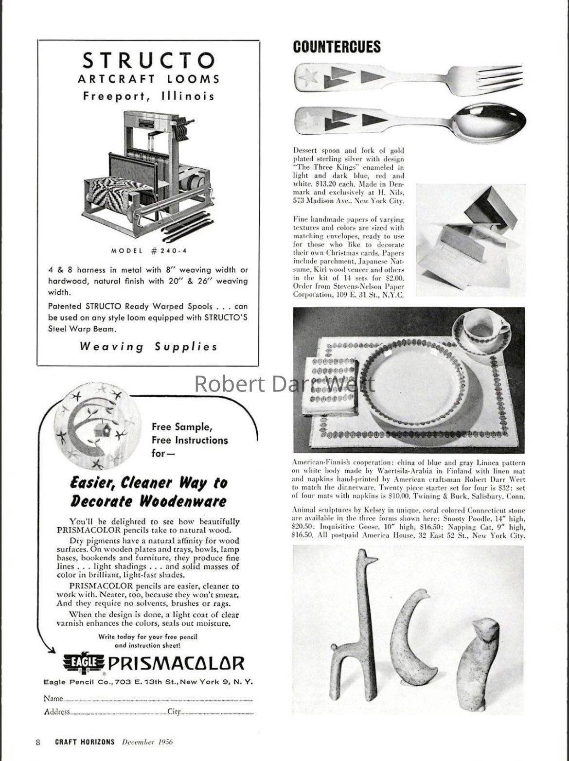 Date based on editorial in Craft Horizons magazine, December 1956; see images.Inscription/Signature/Marks