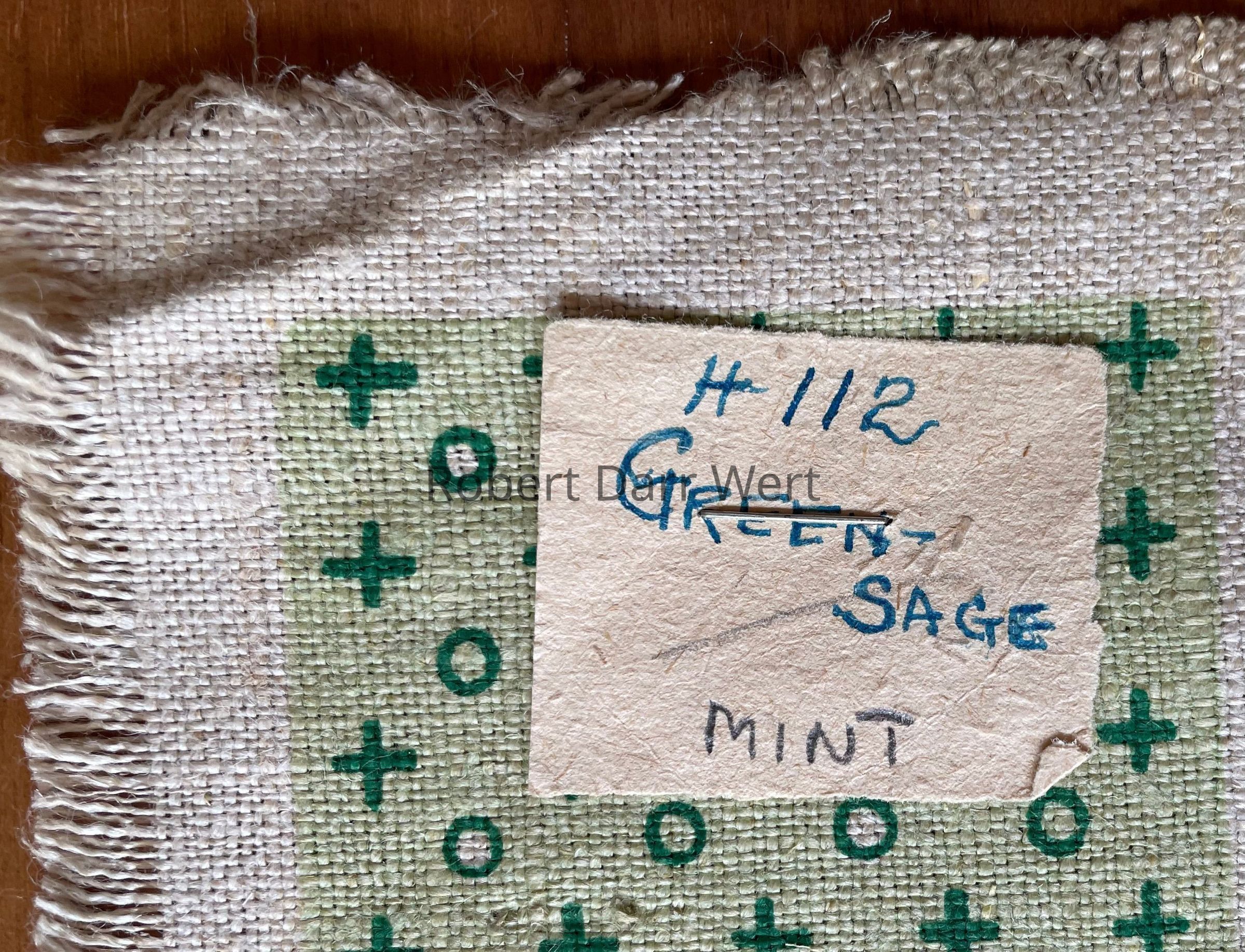 This placemat set was produced in as many as eight colorways over the course of several years in the early 1950’s. It appears on a c.1951 Country Prints packing slip and a c.1952 Country Prints brochure.