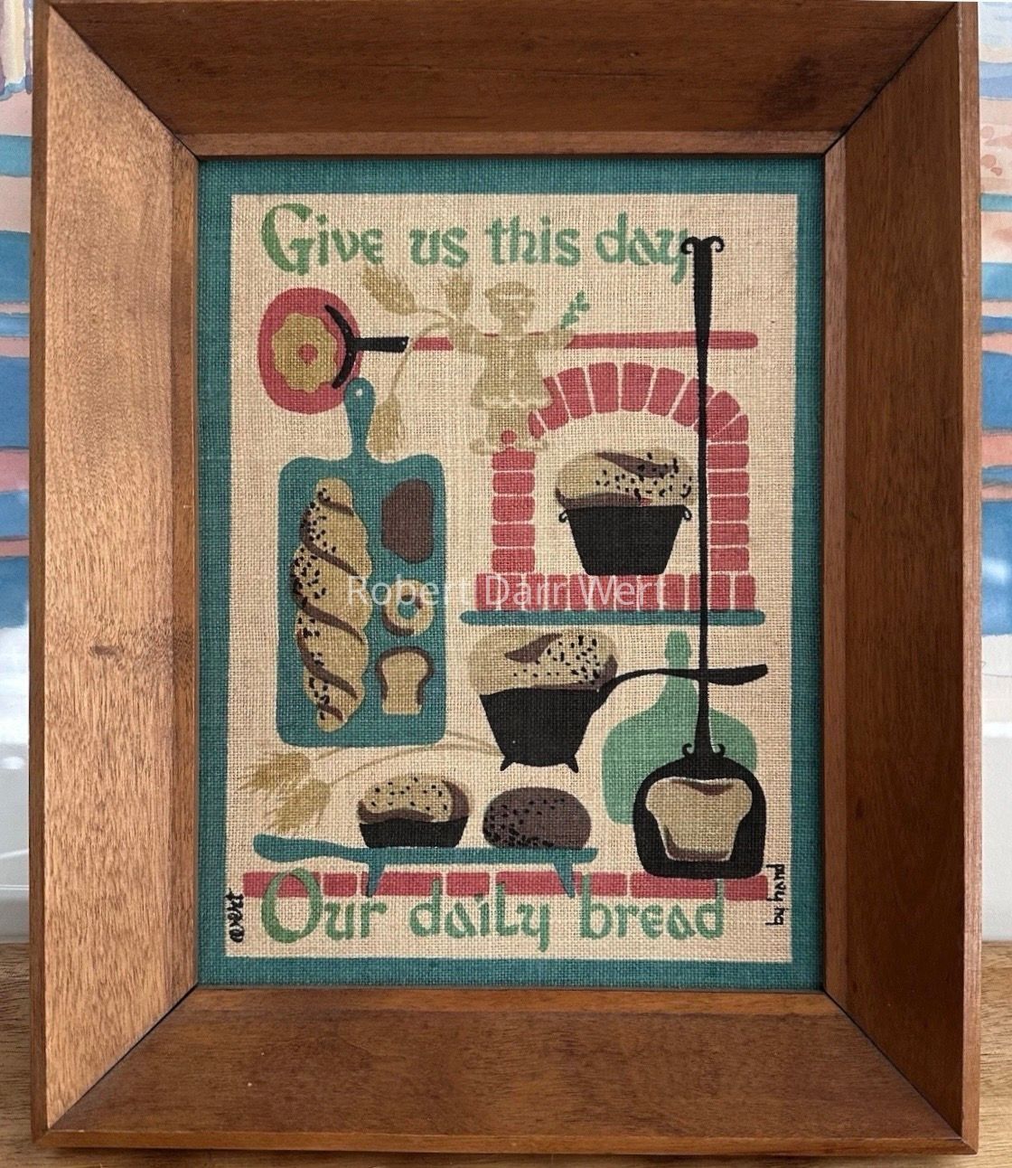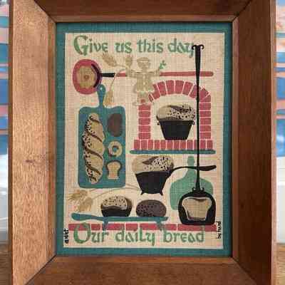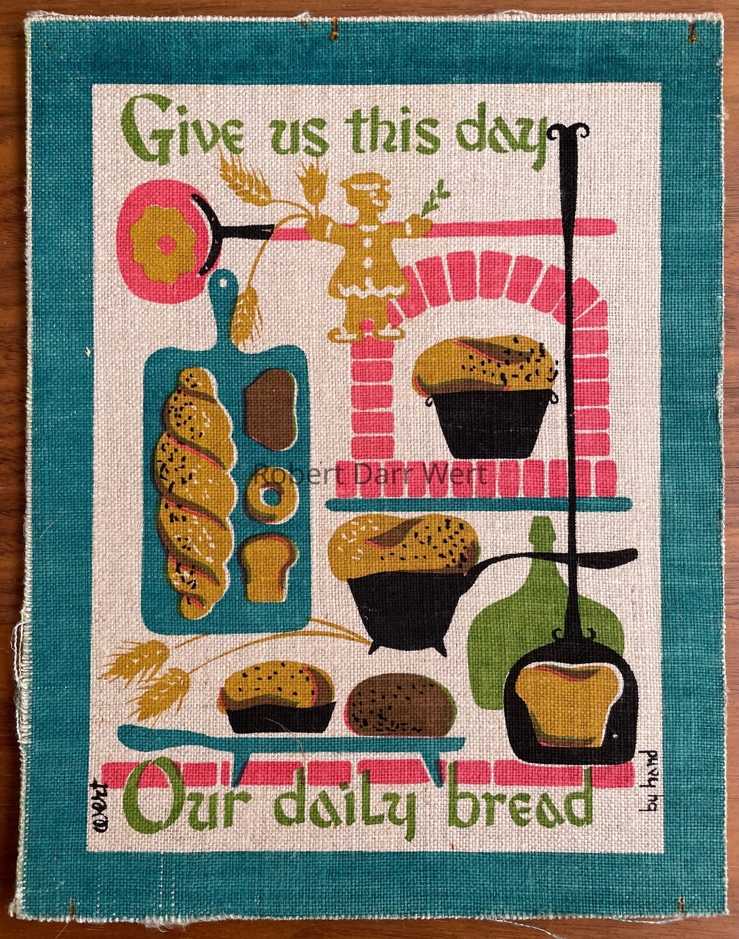 Bread print: Breads and baking tools illustrating a line from the Lord’s Prayer, “Give us this day our daily bread”.