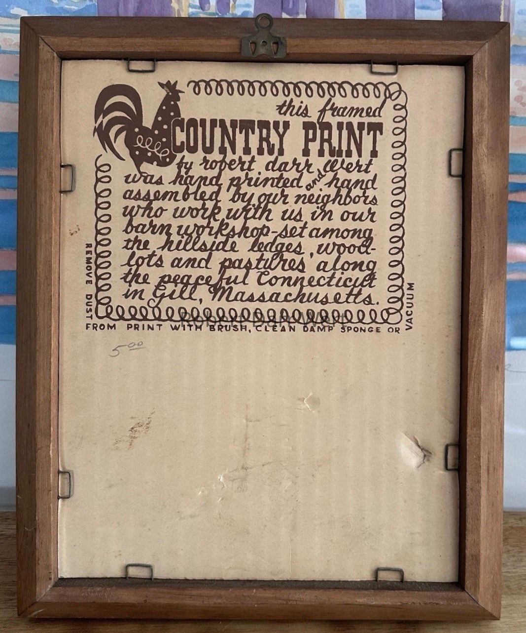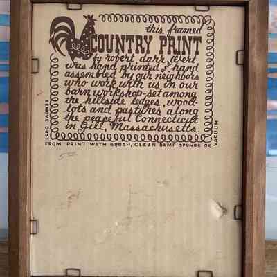 This pair of prints appears in the c.1960 brochure “Country Prints in Frames Designed by Robert Darr Wert”; see images. The single print shown in color is a Country Prints production sample retained as a print record.