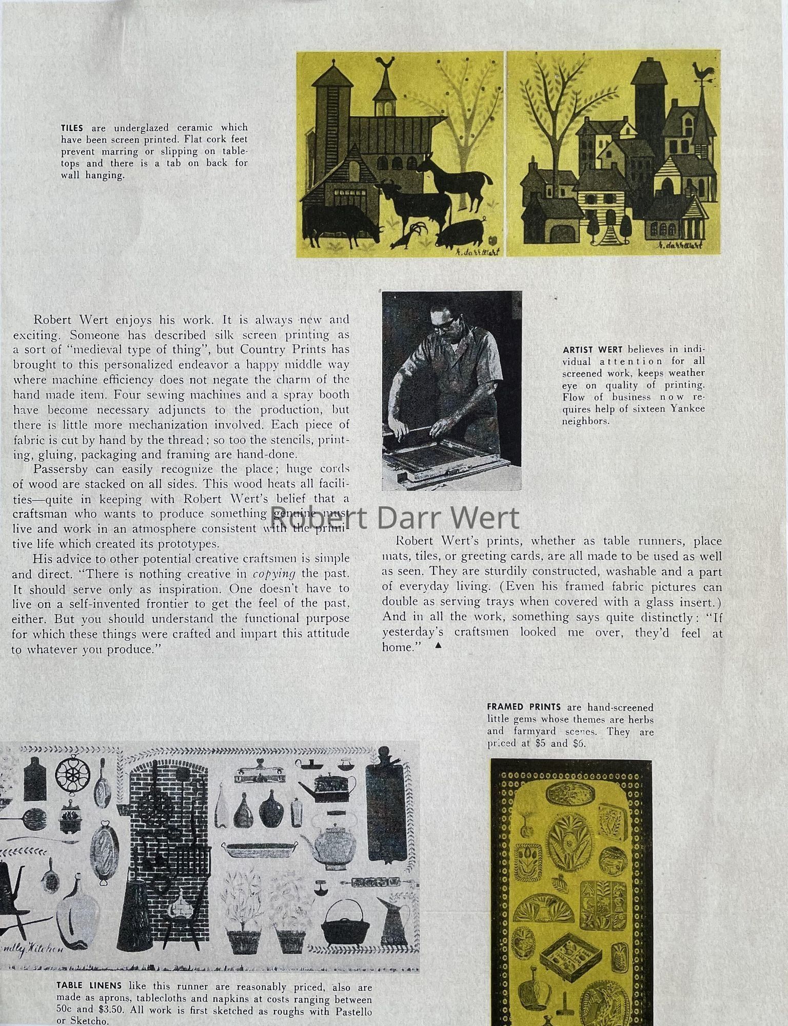 “ROBERT DARR WERT”, in blue block print, lower left corner.Material