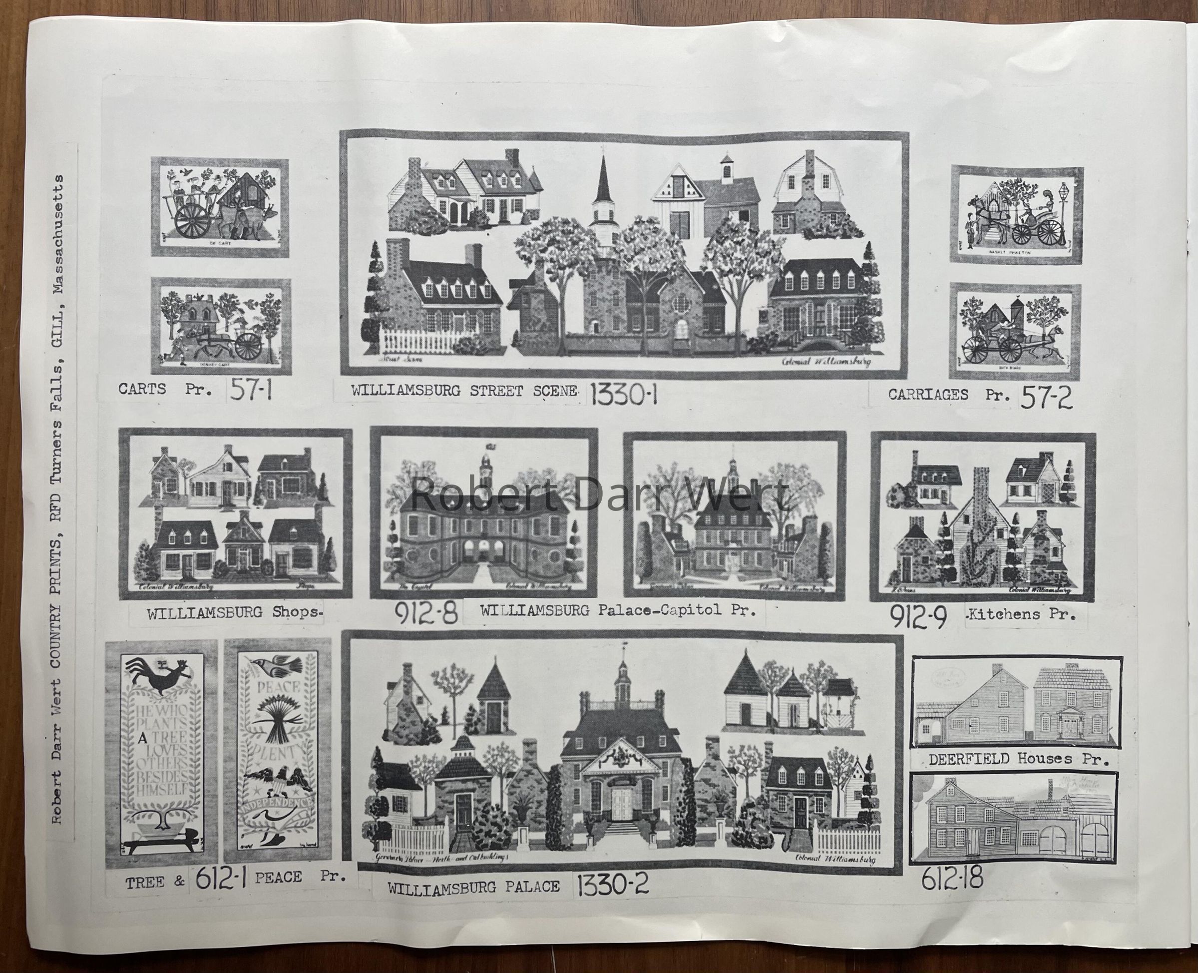 This pair of prints is listed in the January 1960 Country Prints price list, and appears in the c.1960 brochure “Country Prints in Frames Designed by Robert Darr Wert”. Prints were produced in a choice of antique birch or flat black frames.Made/Created