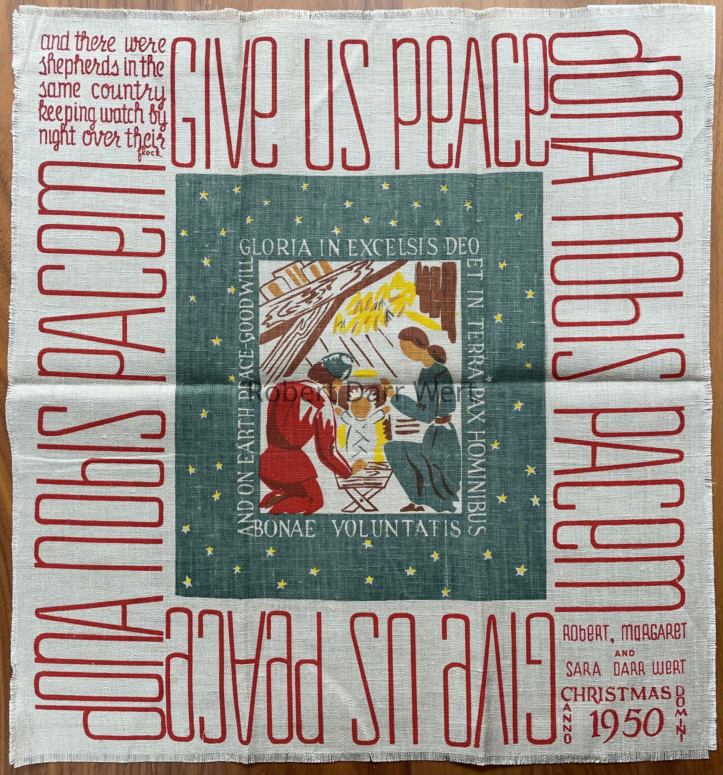 “Robert, Margaret and Sara Darr Wert, CHRISTMAS ANNO DOMINI 1950”, lower right corner.Dimensions