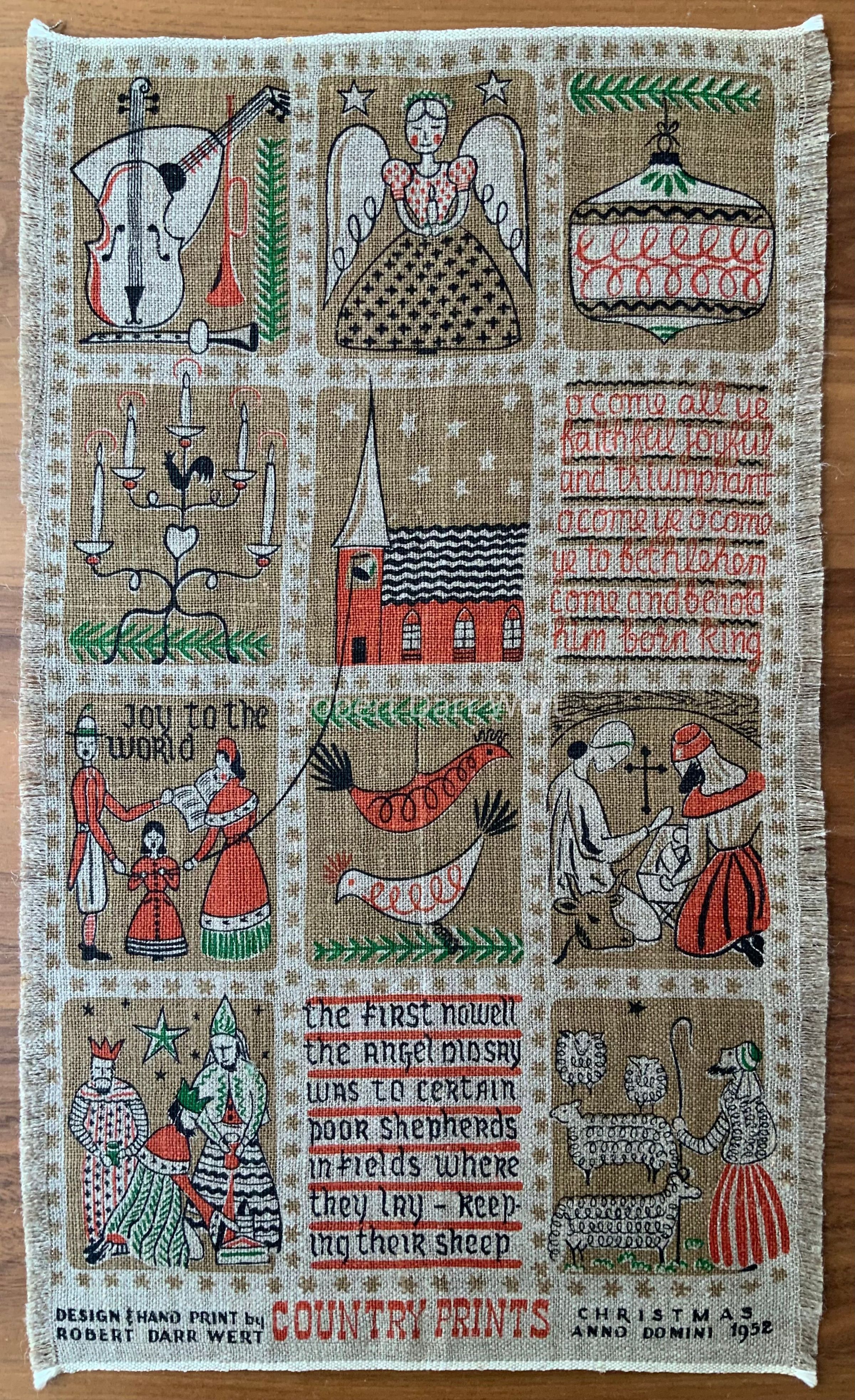 “DESIGN & HAND PRINT by ROBERT DARR WERT COUNTRY PRINTS CHRISTMAS ANNO DOMINI 1952”, along lower margin.Dimensions