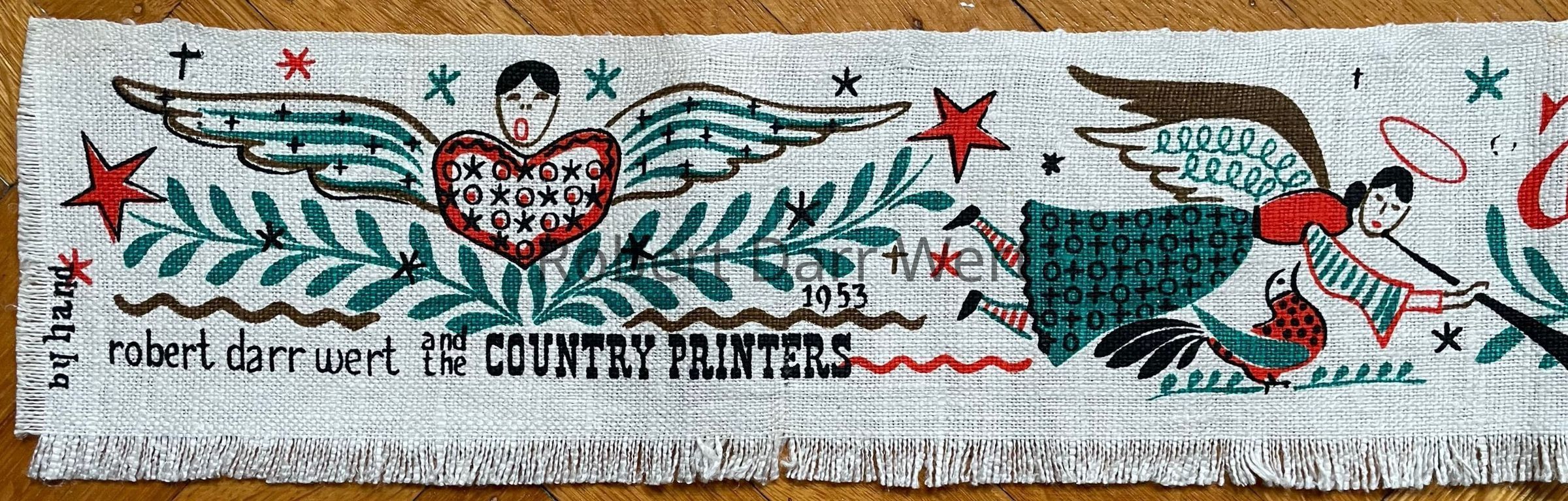 “by hand robert darr wert and the COUNTRY PRINTERS”, at left with date “1953” appearing above “PRINTERS”.Material