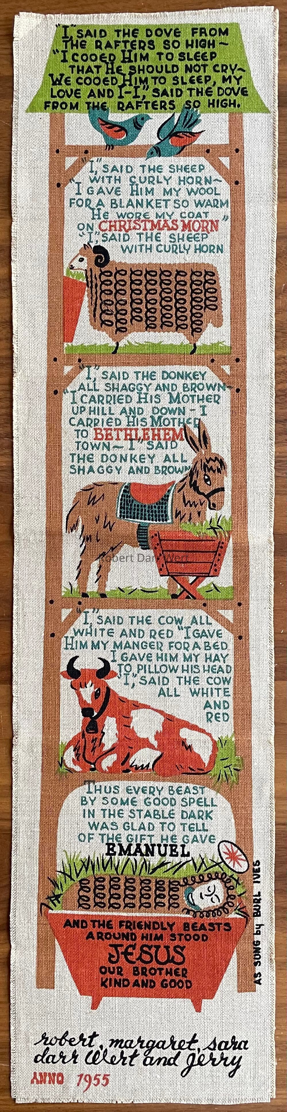 “robert, margaret, sara darr wert and jerry, ANNO 1955” at lower margin, and “AS SUNG BY BURL IVES” in right margin.Material