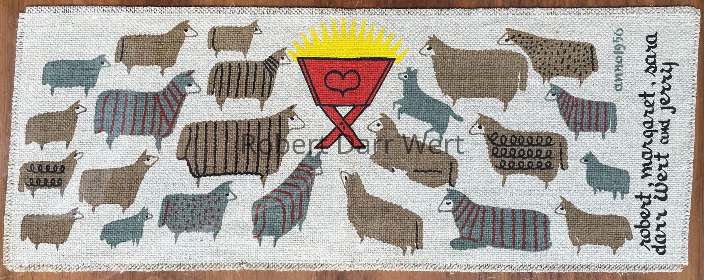 “anno 1956, robert, margaret, sara darr wert and jerry”, right margin.Material