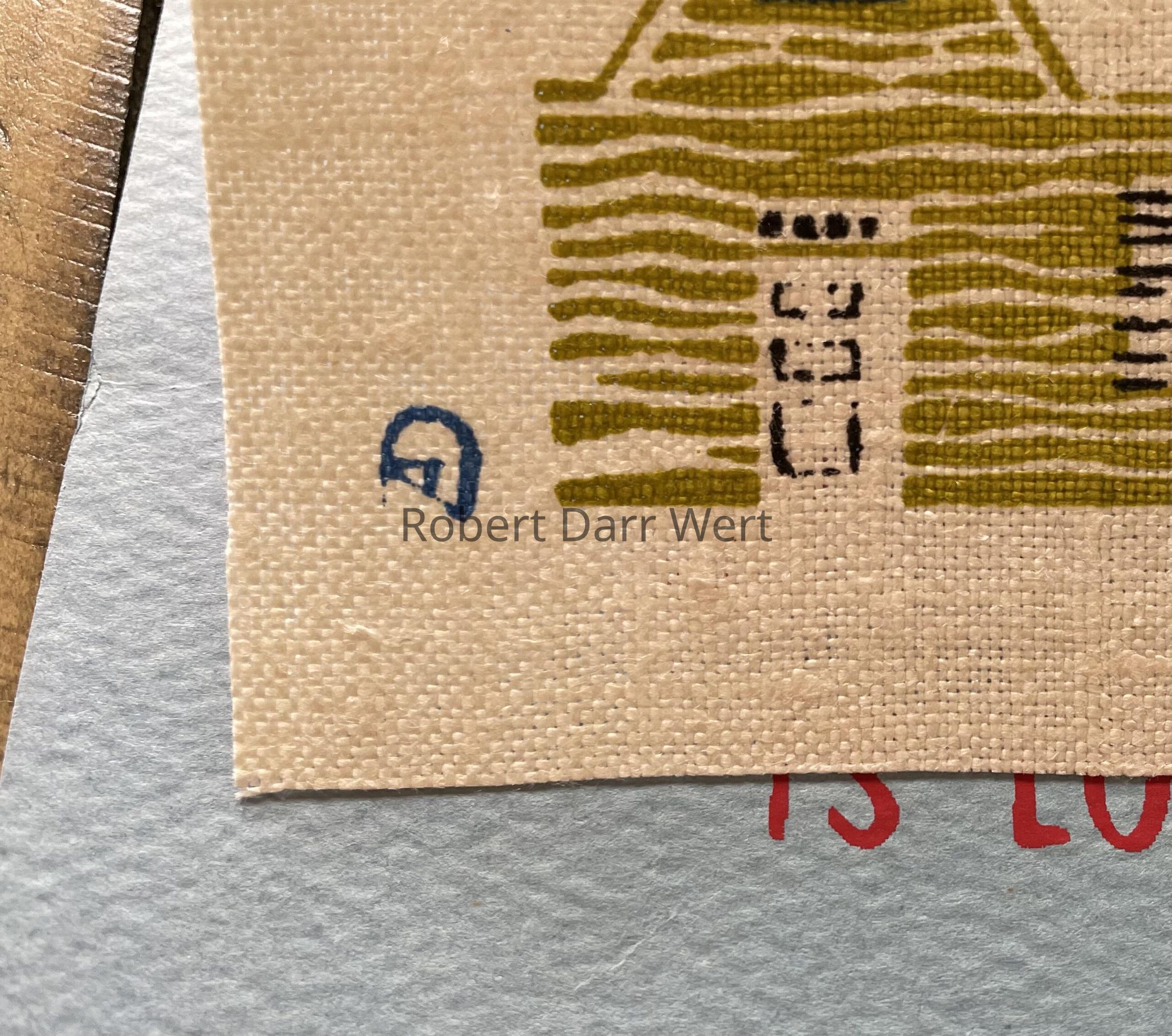 Initials AD or DA in lower left corner of linen print.