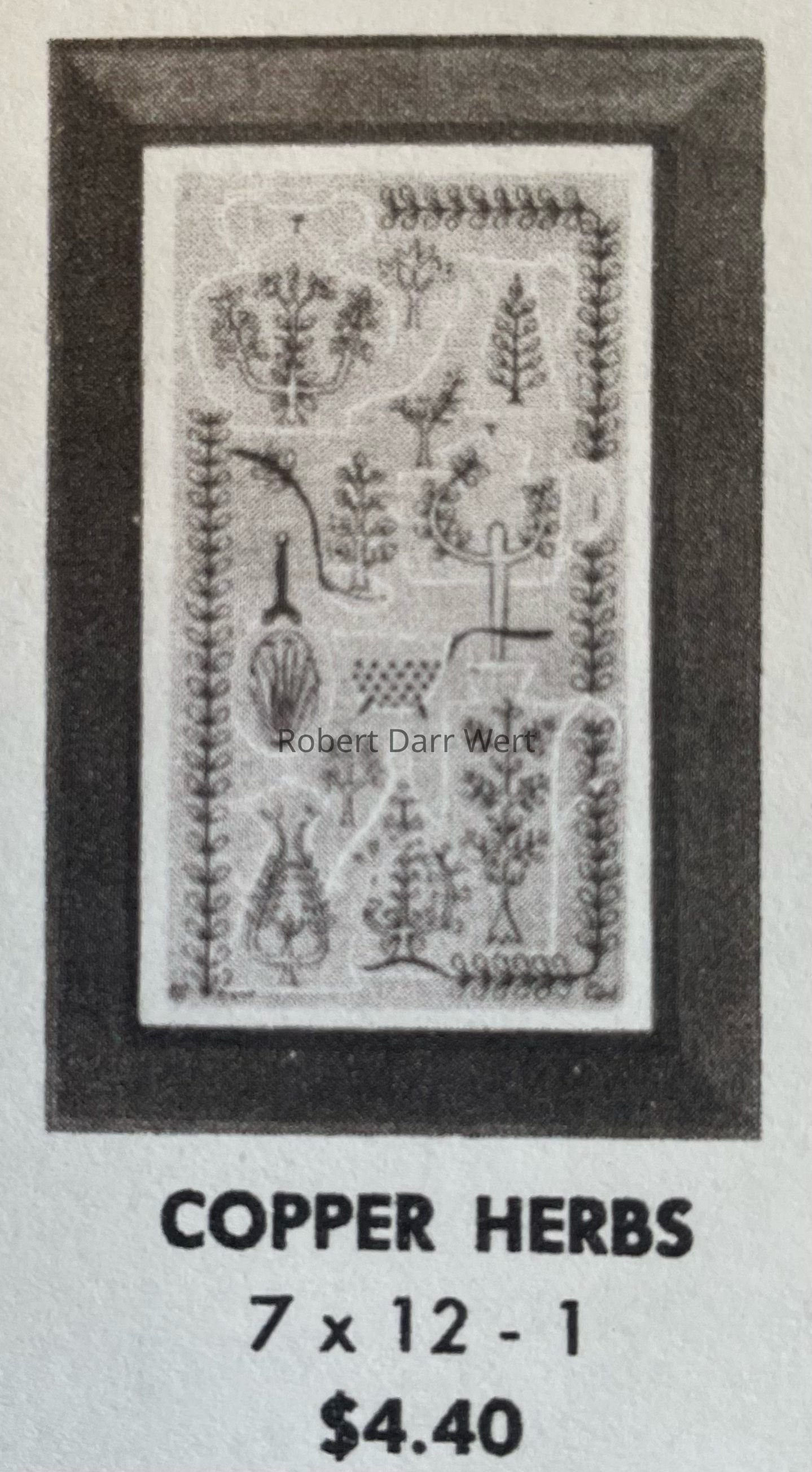 This print appears in the borochure “Country Prints in Frames”, c.1955, and is paired with Tin Herbs 712-2; see images.Made/Created
