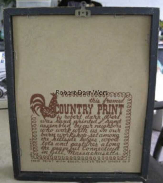 The official name for this print has not been documented. The staple marks in the corners of this example indicate it was likely a Country Prints sales sample. This print has descended through the Wert family.