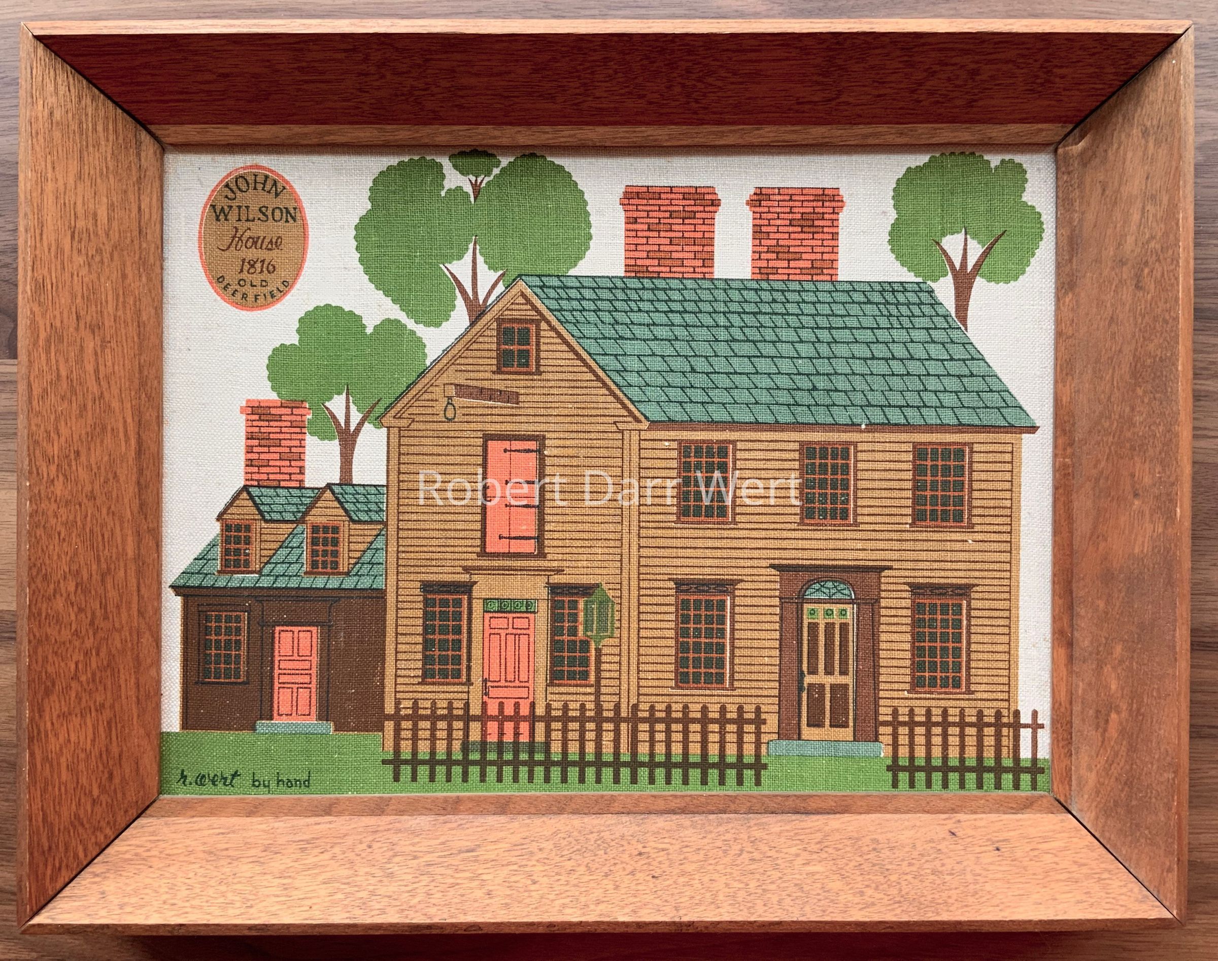 A six-screen/seven-color silkscreen print depicting the 1816 John Wilson House in Old Deerfield, Massachusetts, now known as Historic Deerfield. See web link.