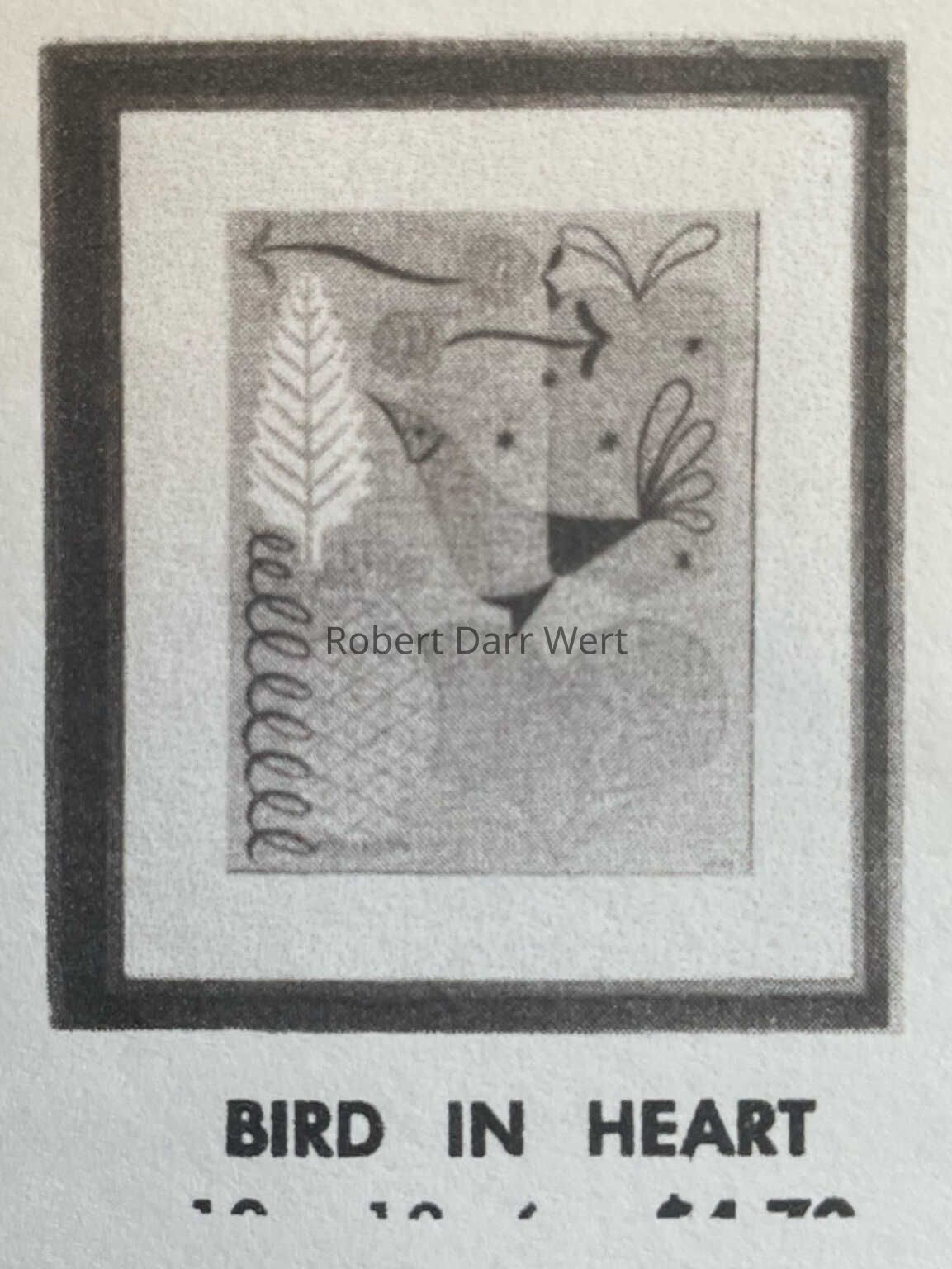 This print appears in the c.1955 brochure “Country Prints In Frames” paired with “Bird in Heart 10x12-6”. A c.1955 price list states this print is “new”.Made/Created
