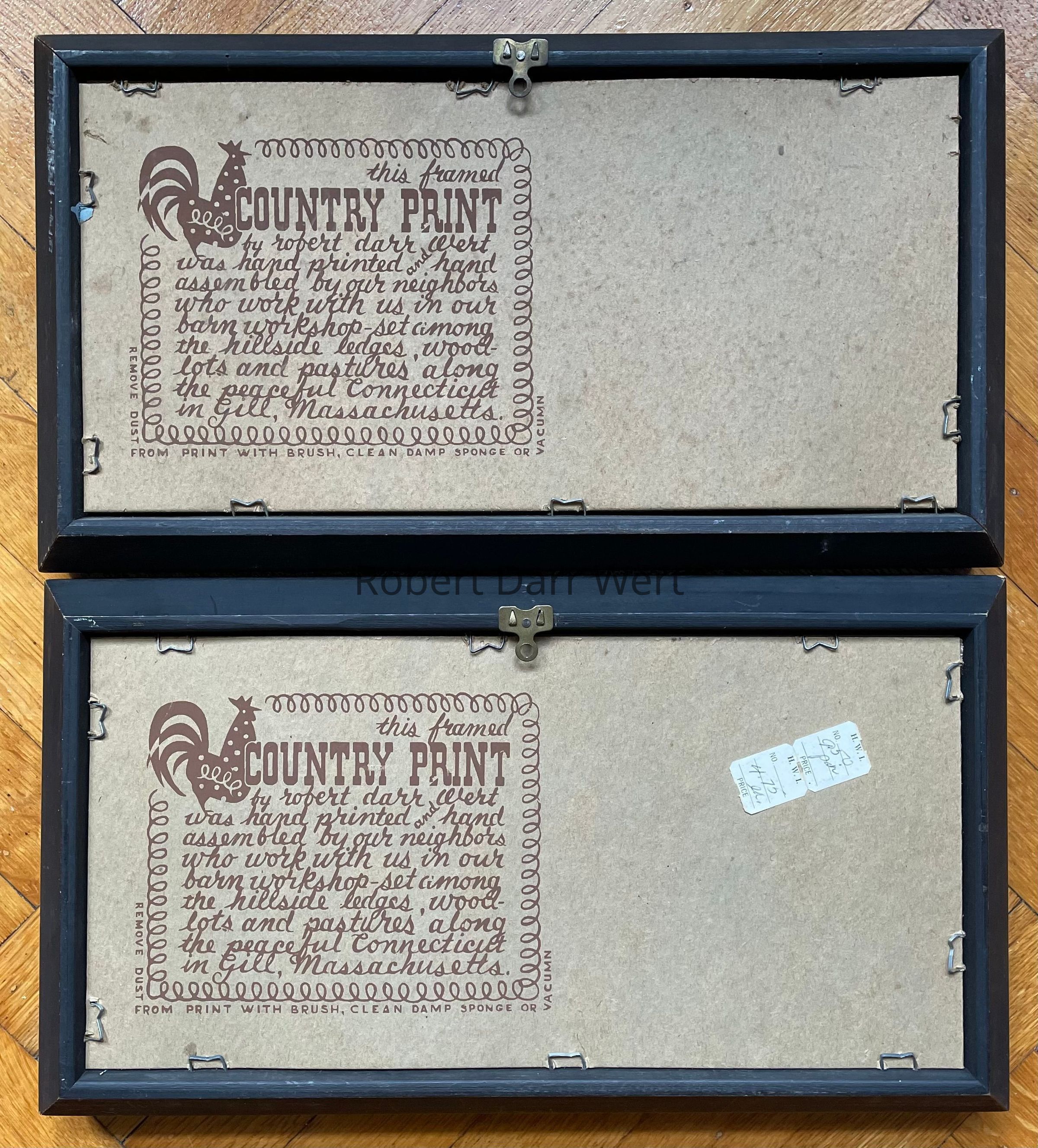 These prints are listed in the January 1960 Country Prints price list, and appear in the c.1960 brochure “Country Prints in Frames Designed by Robert Darr Wert”. Prints were produced in a choice of antique birch or flat black frames.