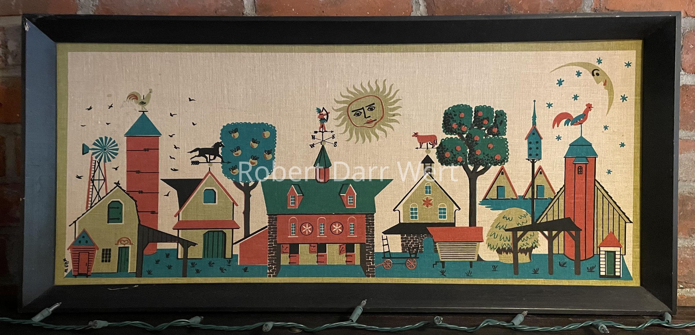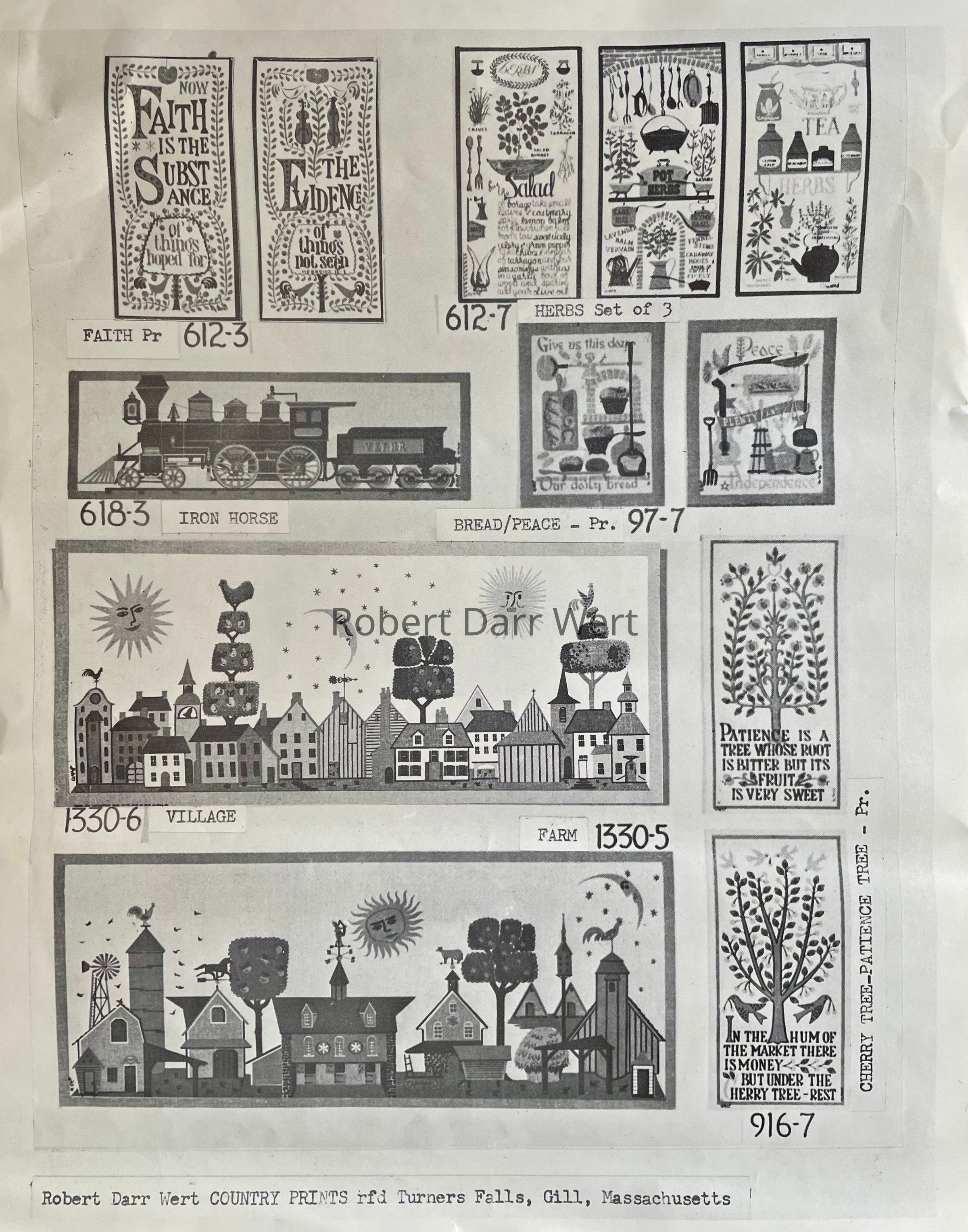 This print is listed in the January 1960 Country Prints price list in a choice of antique birch or flat black frames, and appears in the c.1960 brochure “Country Prints in Frames Designed by Robert Darr Wert”; see images.Made/Created