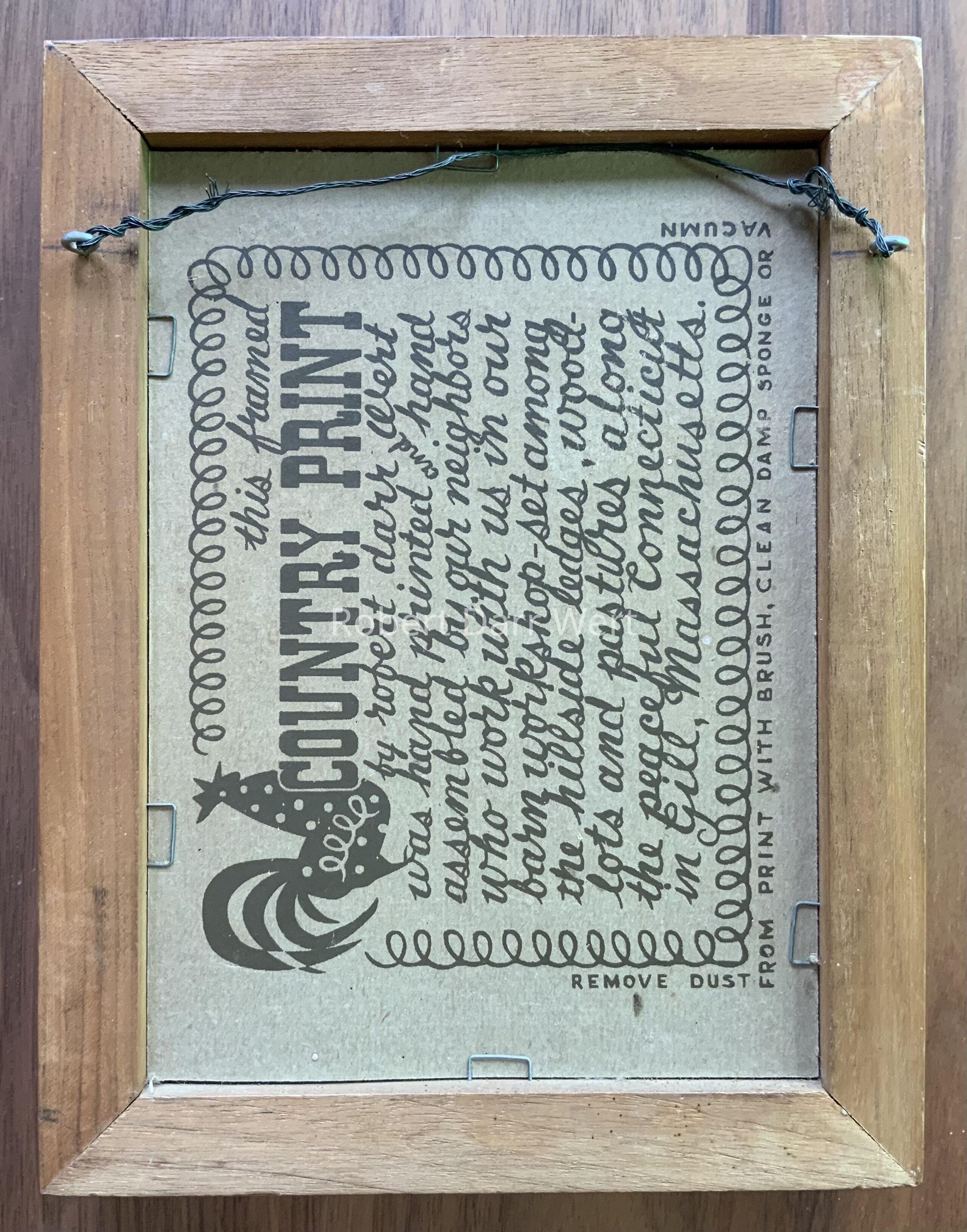 Date based on natural wood frame used by Country Prints in the early 1960’s.Inscription/Signature/Marks