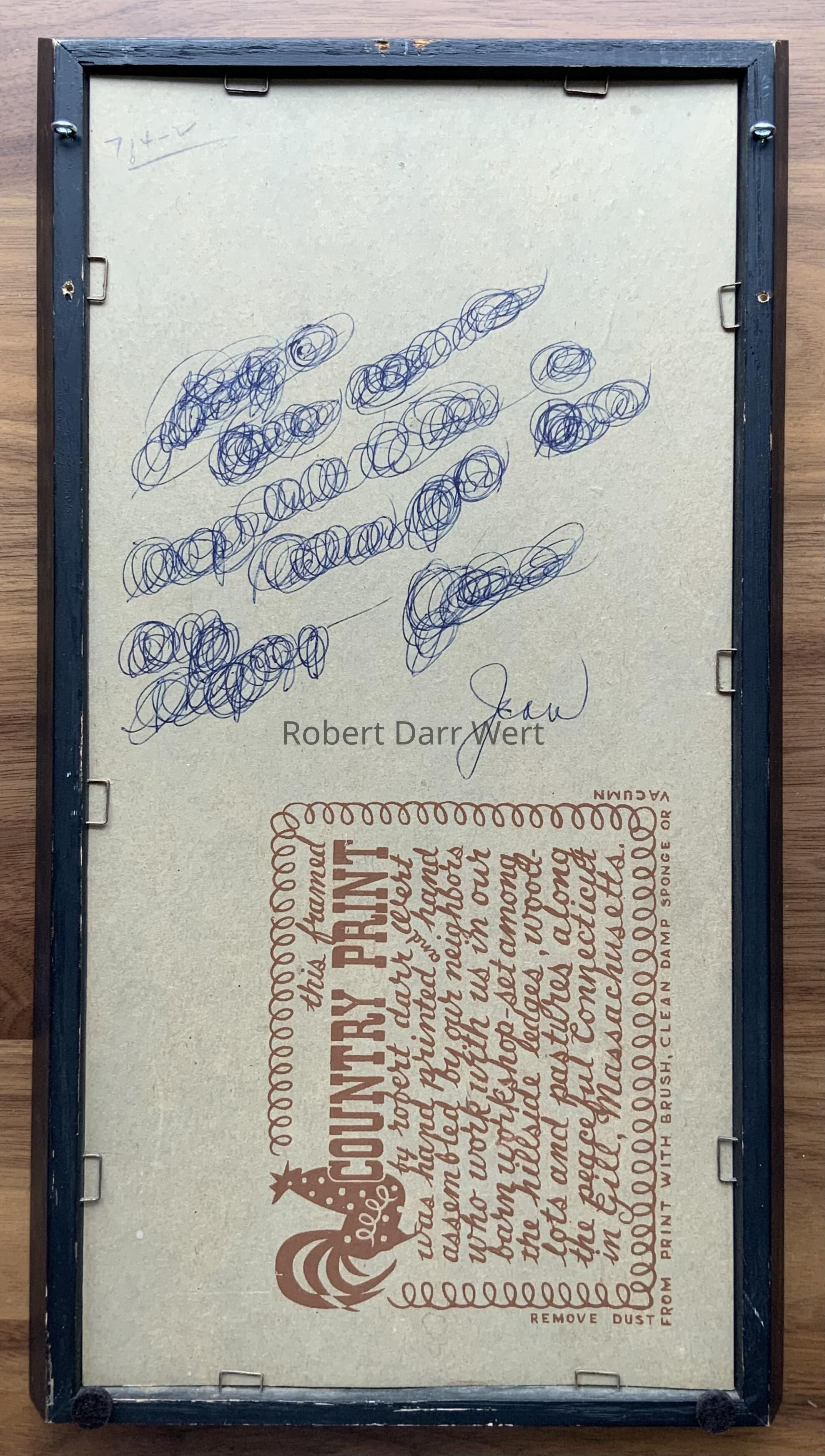 Prints are dry mounted on chipboard, backed with a second sheet of chipboard, and secured within Country Prints black painted wood frames with staples.Inscription/Signature/Marks