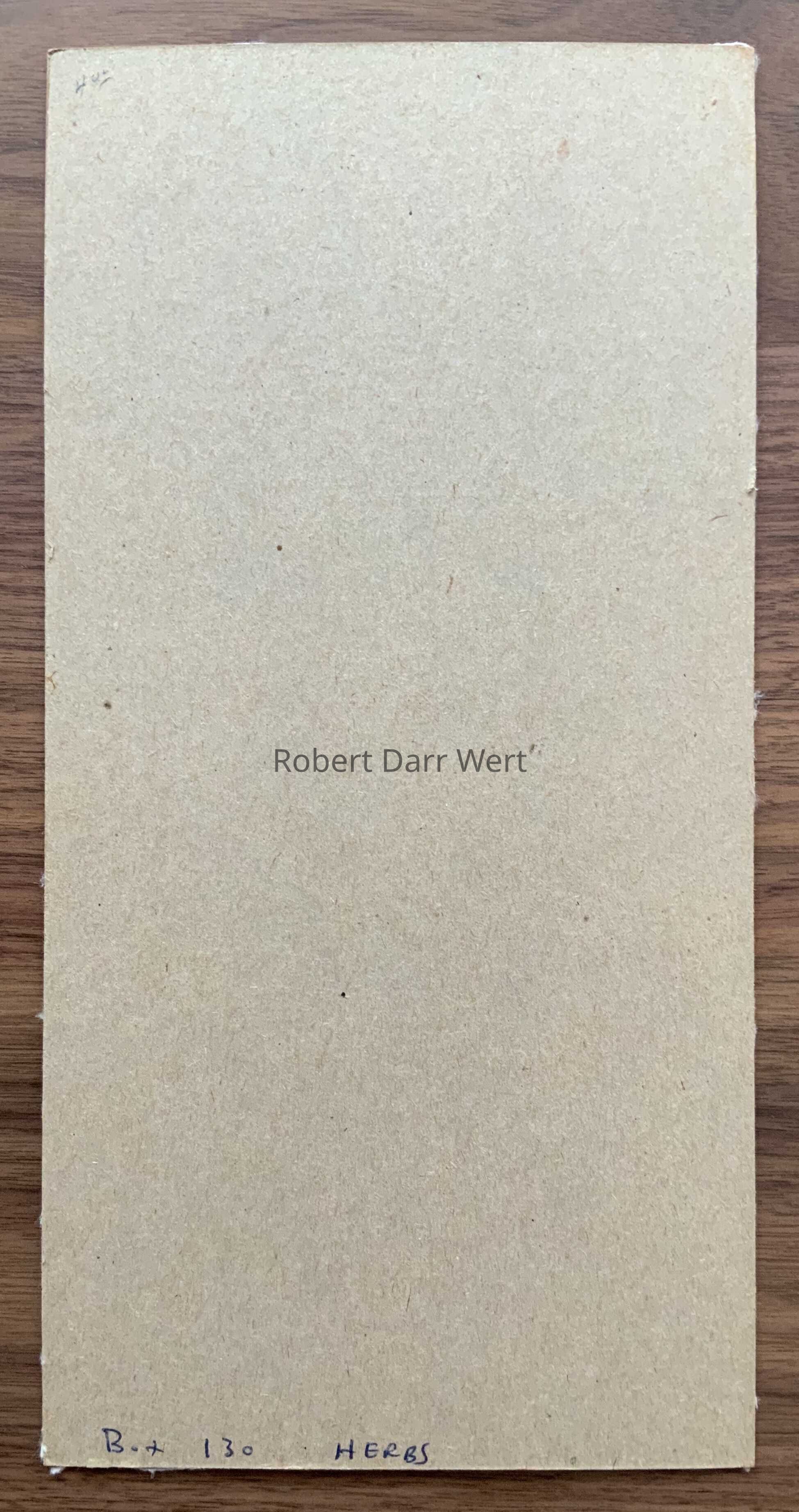 This print appears solo in the c.1955 brochure “Country Prints In Frames” as item number 612-6, and as part of a set of three prints in the c.1960 brochure “Country Prints in Frames Designed by Robert Darr Wert” with a grouped item number of 612-7 (with Pot Herbs and Tea Herbs).