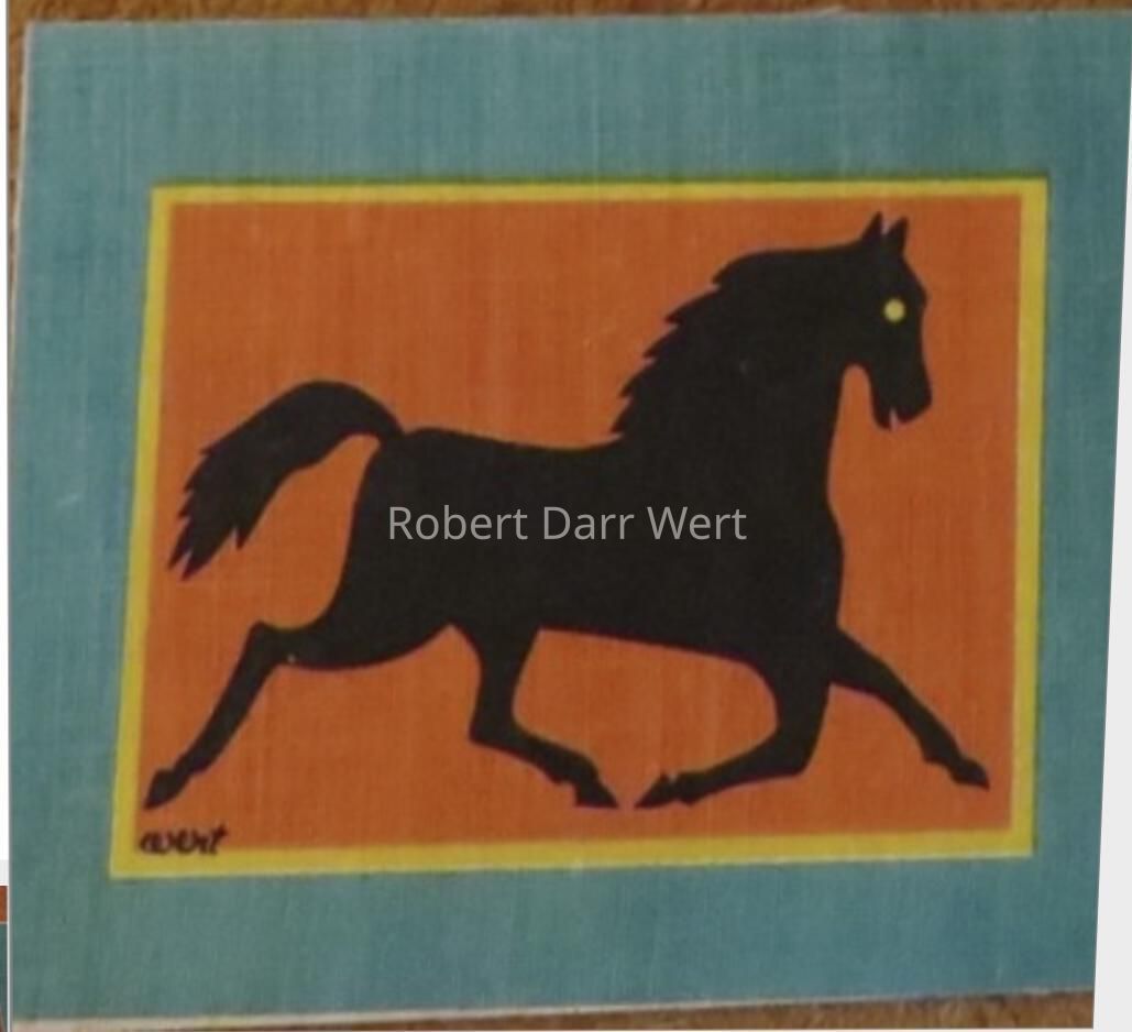 A four-color silkscreen print on linen depicting a horse from an early American weathervane.