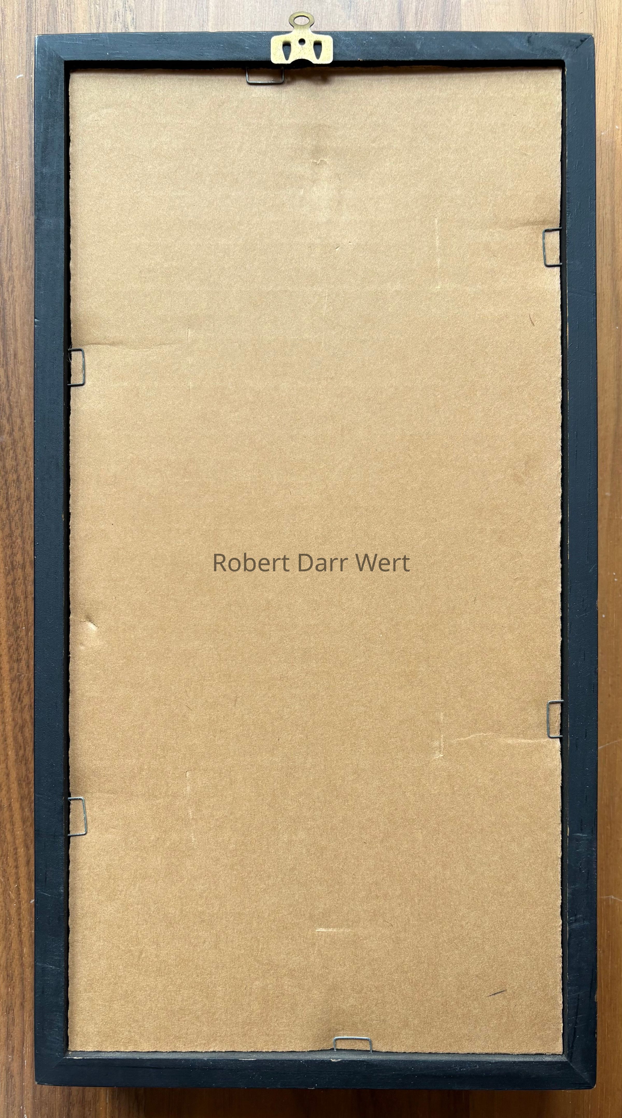 Print is dry mounted on chipboard, backed with corrugated cardboard and secured within a Country Prints black painted pine frame with staples.Inscription/Signature/Marks