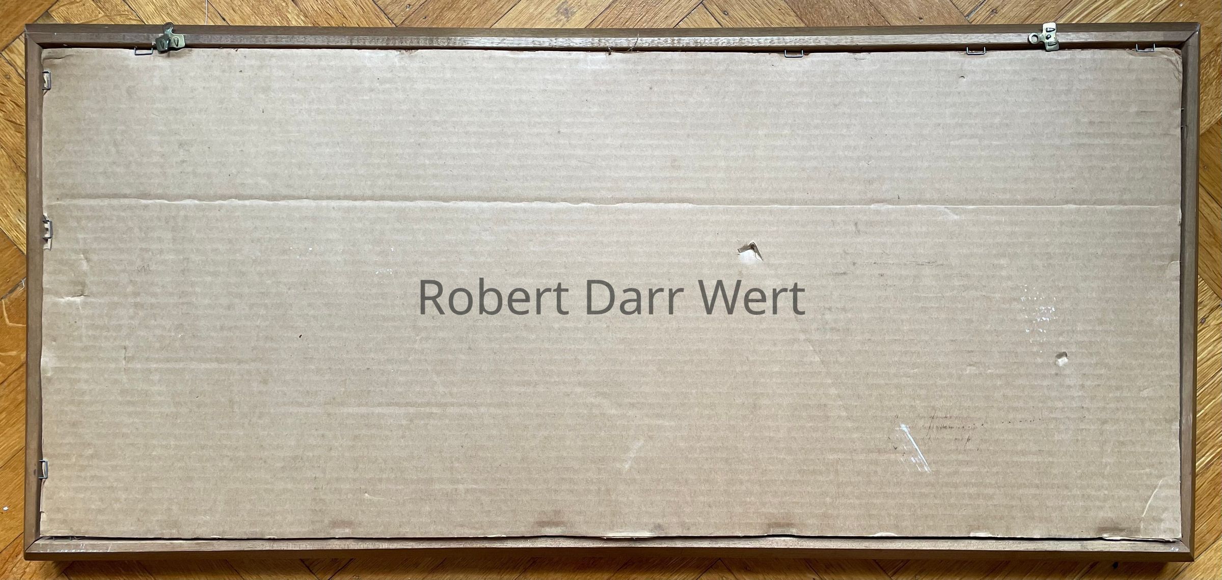 This print is listed in the January 1960 Country Prints price list with a choice of antique birch or flat black frames, and appears in the c.1960 brochure “Country Prints in Frames Designed by Robert Darr Wert”, and is a pair with Williamsburg Palace 1330-2; see images.