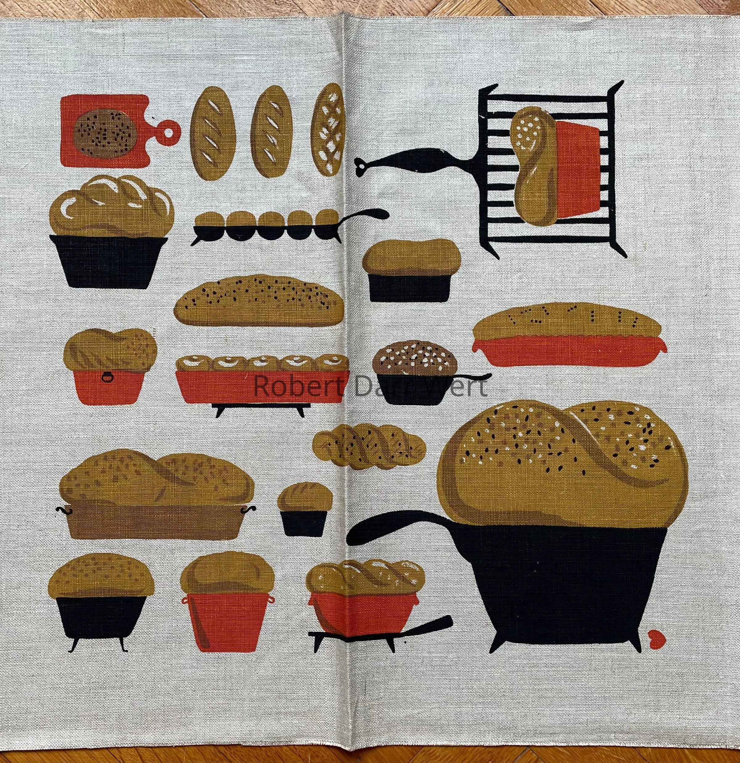 The square panel of breads at the center of the runner was also used to print the matching Muffin Cloths that were produced at this time.
