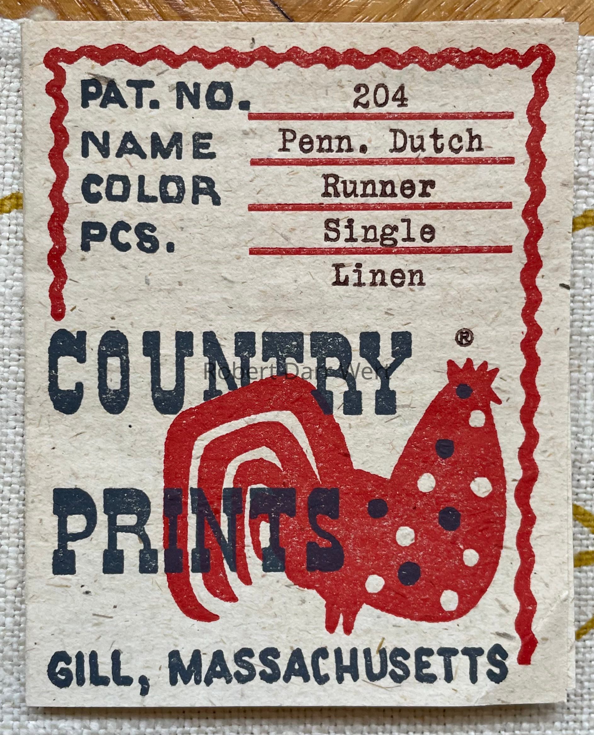 This runner is listed on c.1949 and c.1951 Country Prints packing slips.