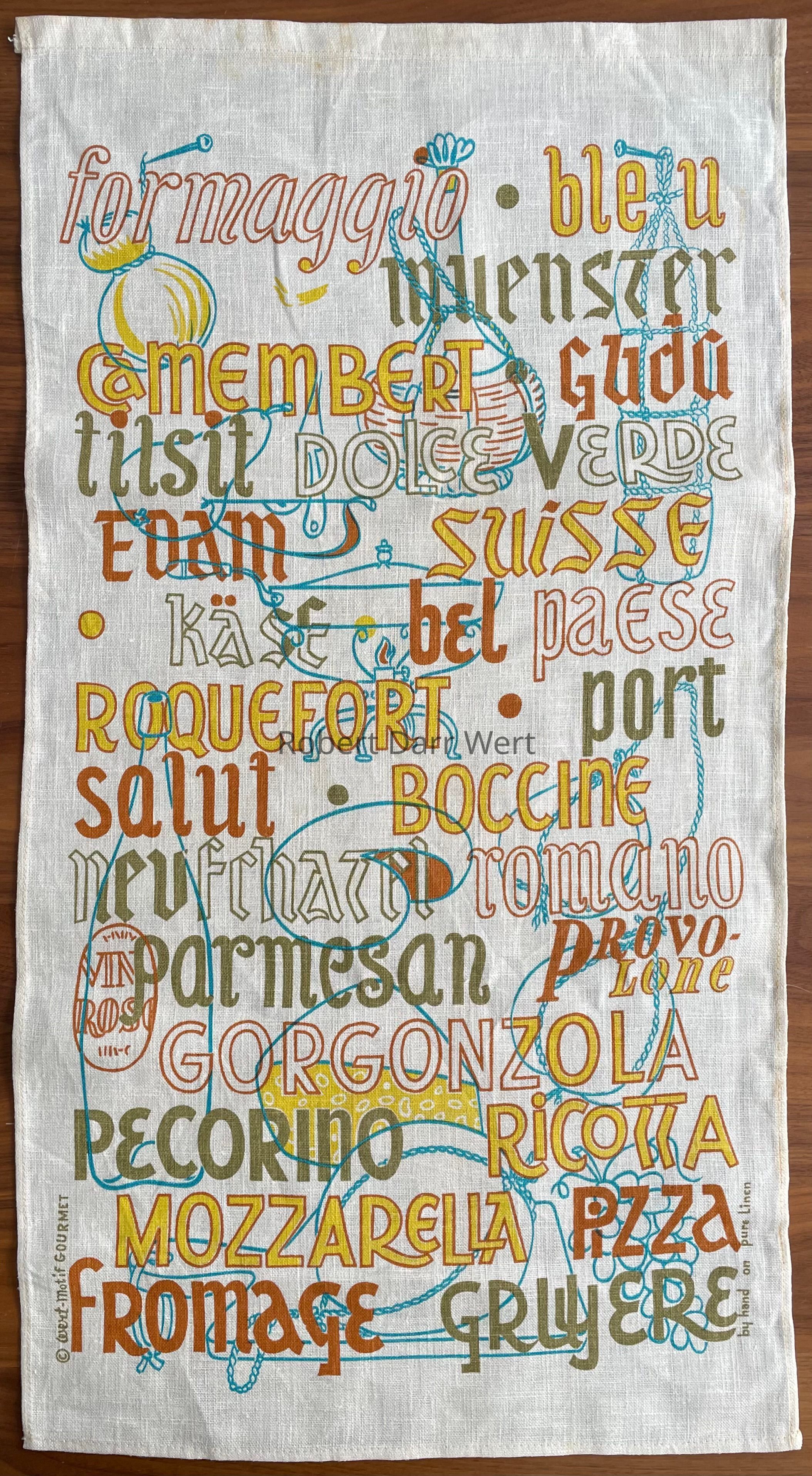 “© wert motif GOURMET”, lower left corner, and “by hand on pure linen”, lower right corner.Dimensions