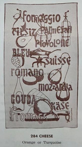Strike-Off: Motif Gourmet, Cheese 284, Turquoise, Unused DesignDescription