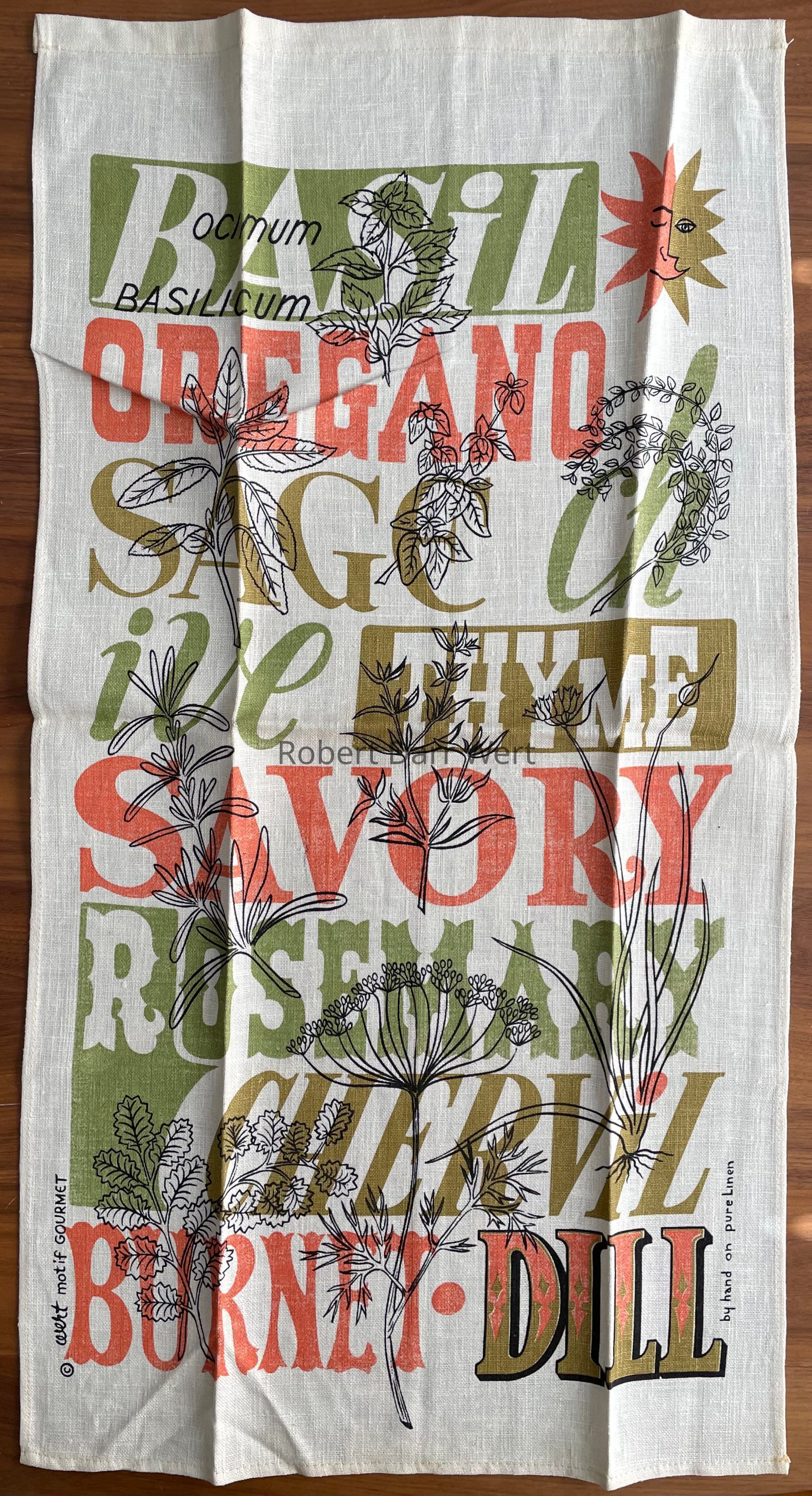 “© wert motif GOURMET”, lower left corner, and “by hand on. pure linen”, lower right corner.Dimensions