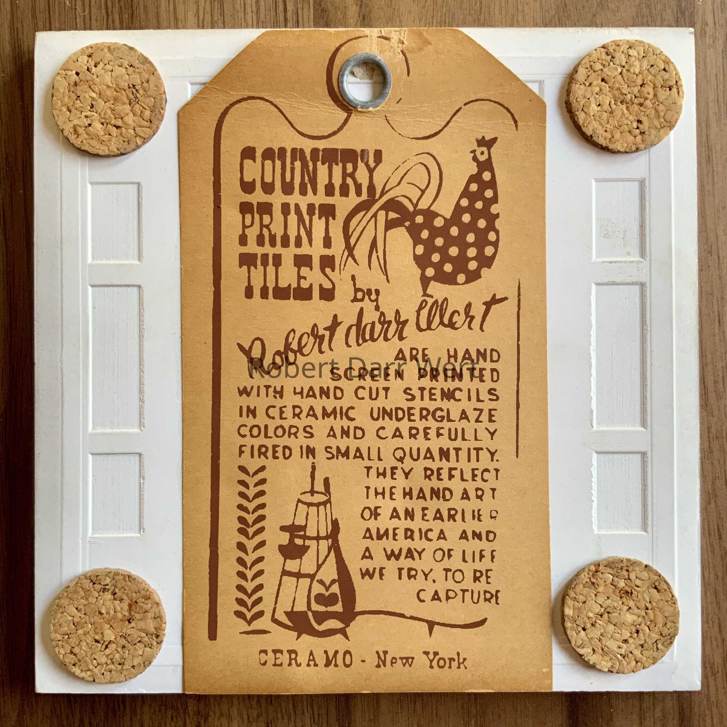 This example is on the thicker tile base used by Country Prints/Ceramo Studios before 1962.