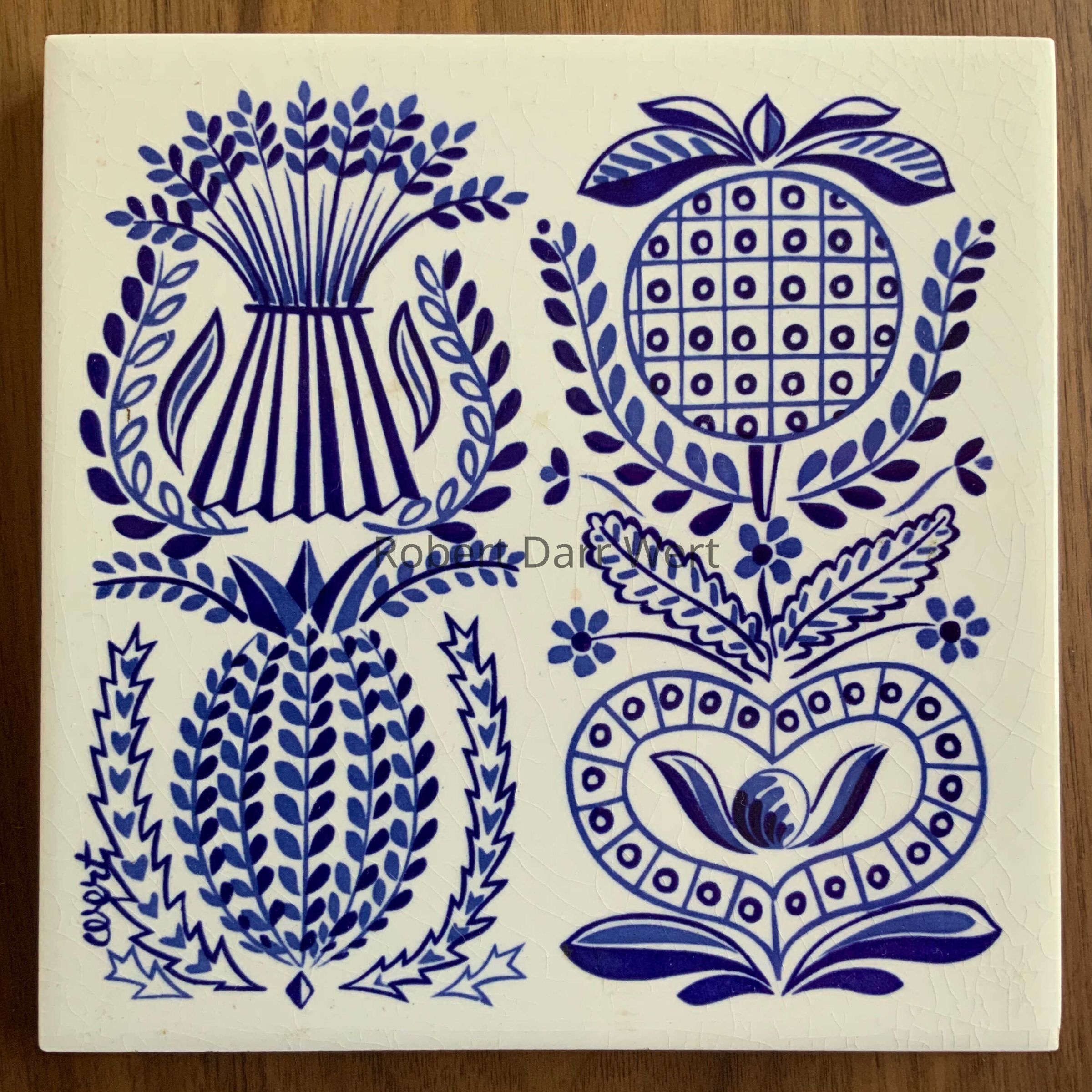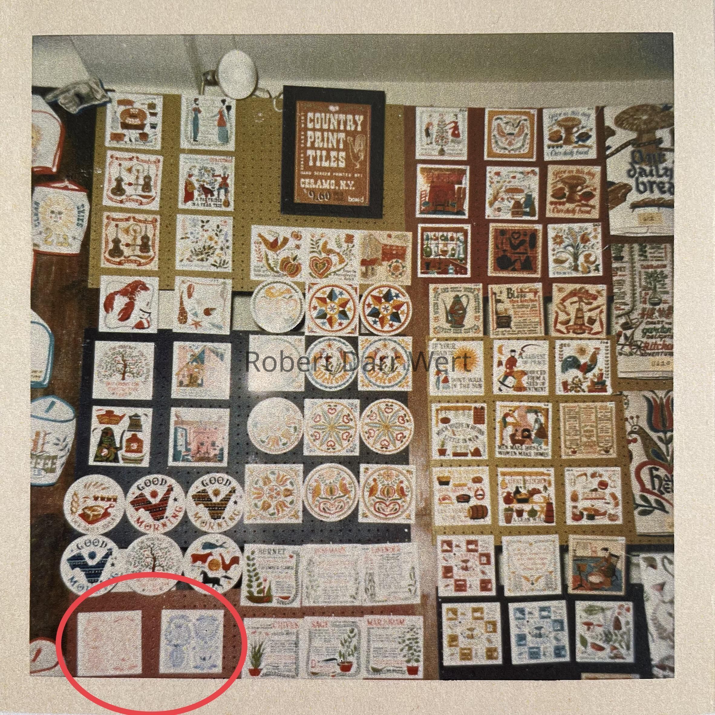 This example is printed on the thicker tile base used by Country Prints/Ceramo Studio before 1962.
