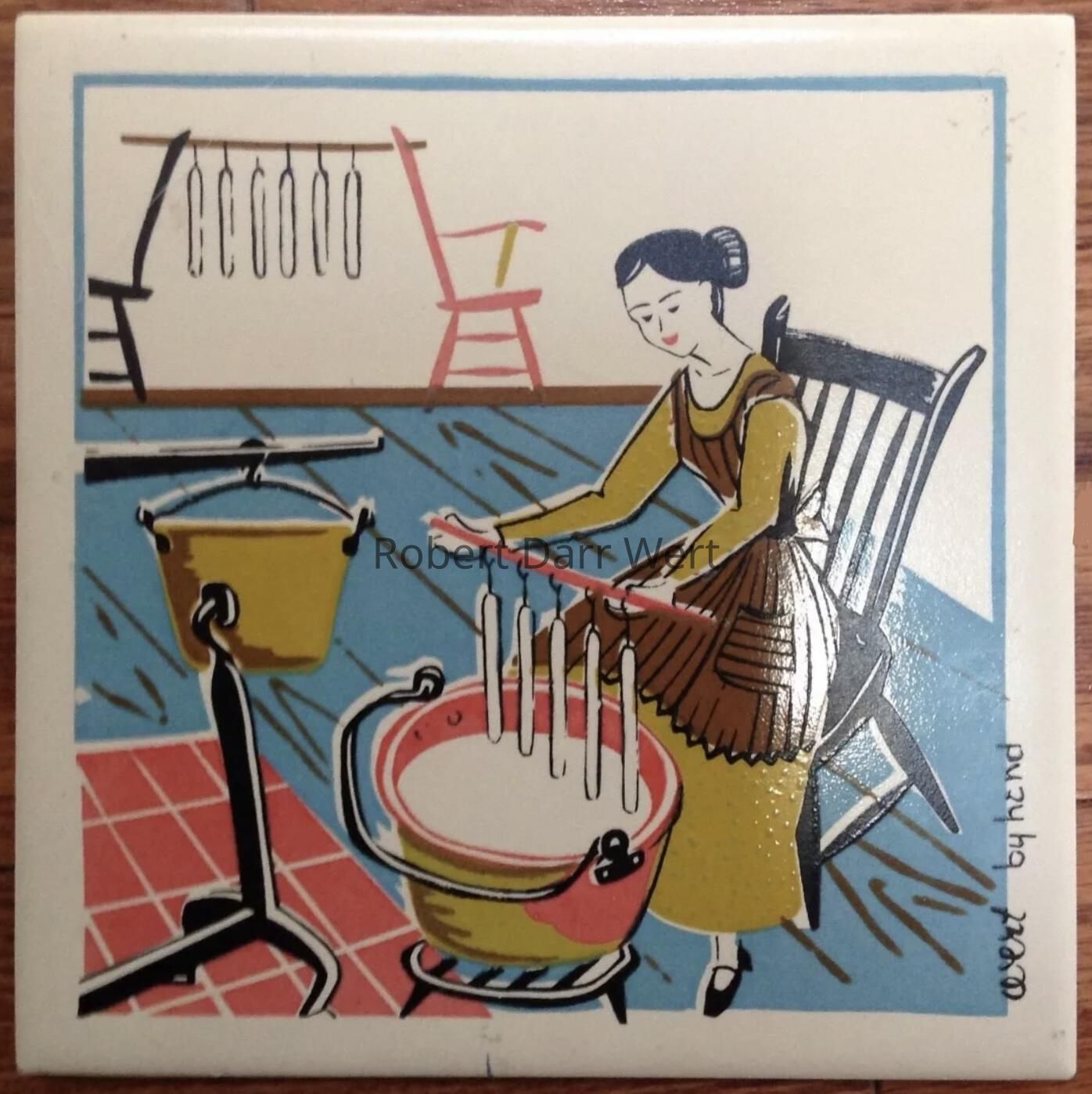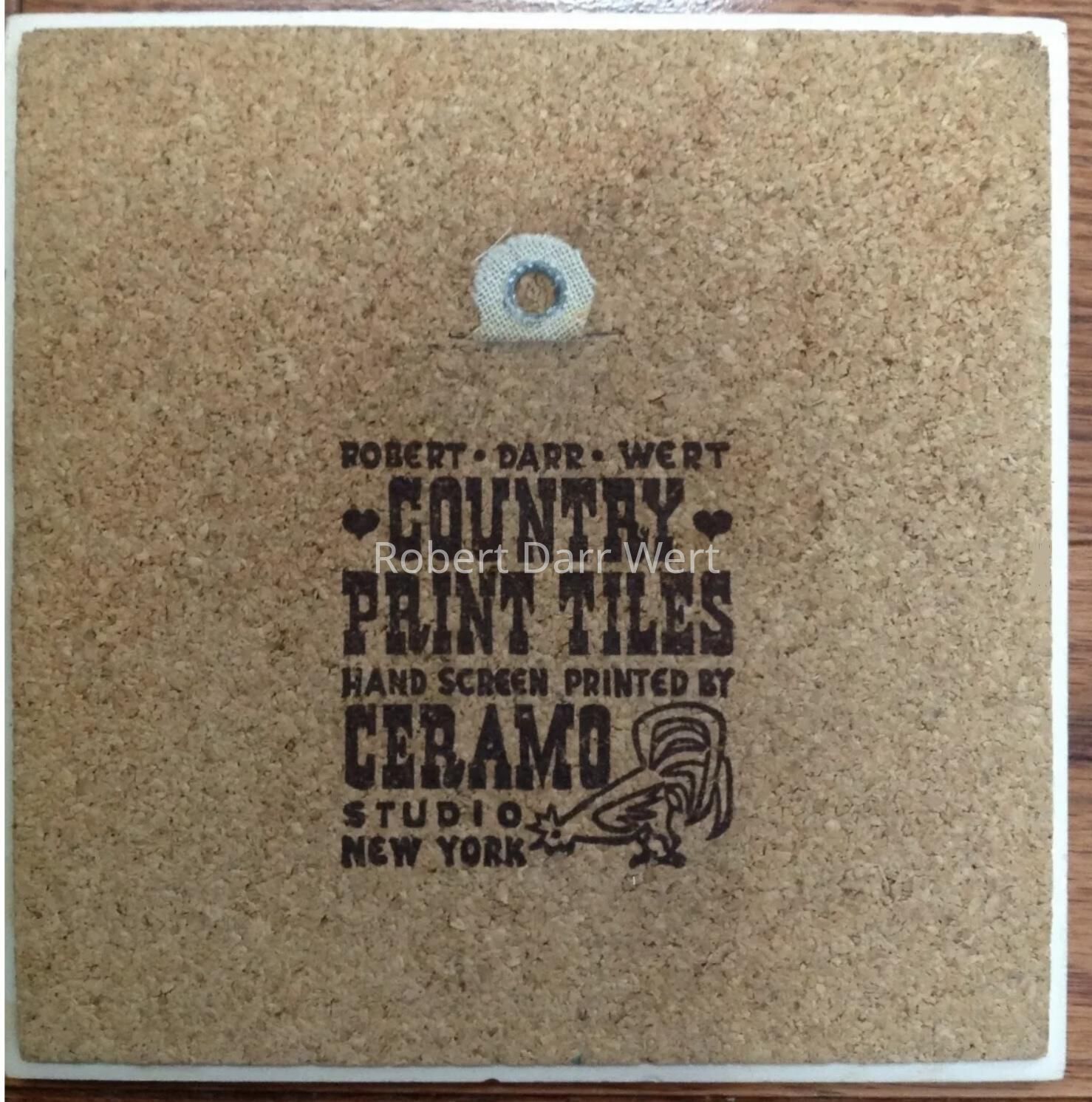This example is printed on the thinner tile base used by Country Prints/Ceramo Studio from 1962 onward.