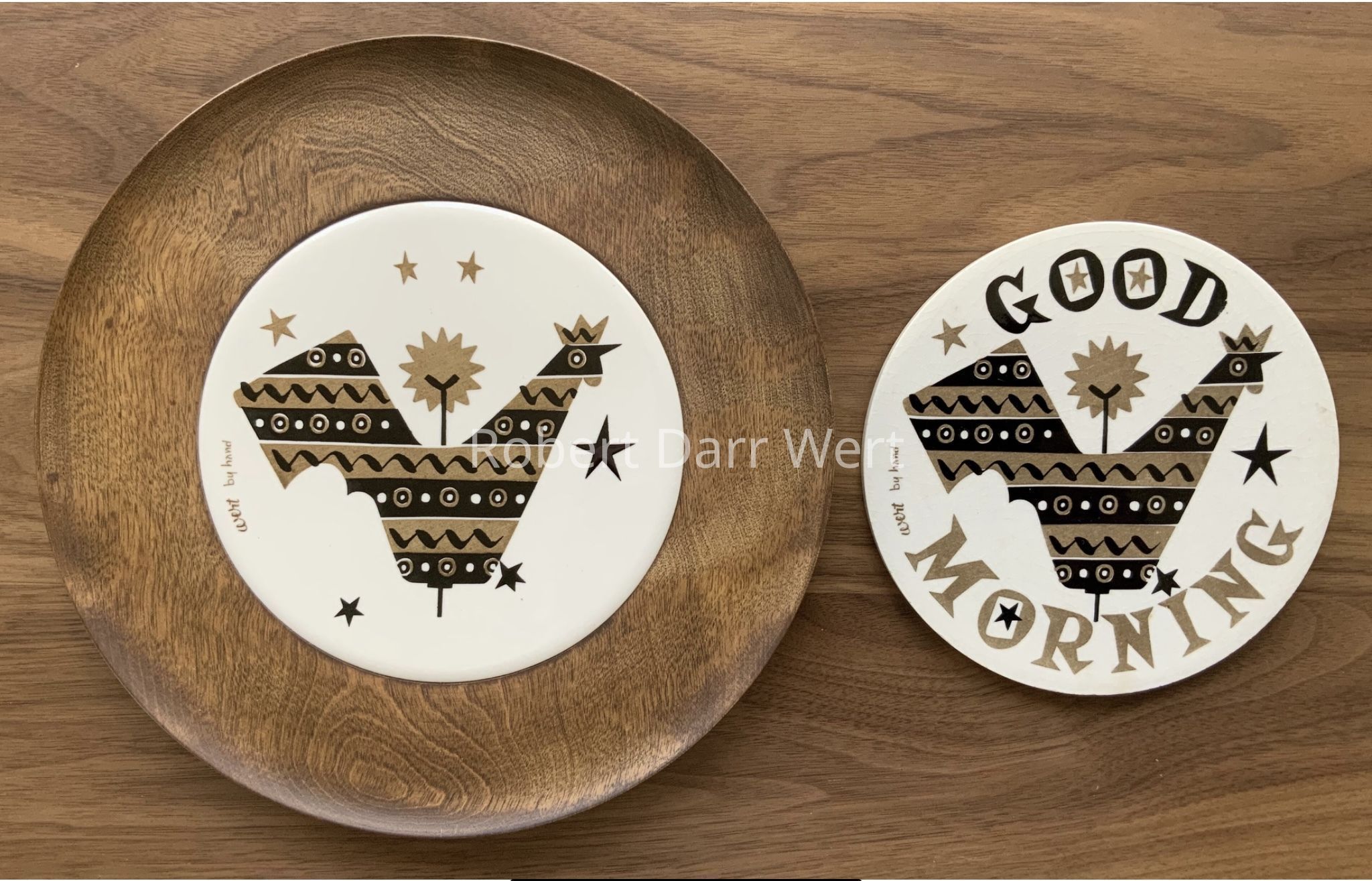Tile designed by Wert and produced by Ceramo Studio, hand-turned server produced by Woodbury’s Woodware, Inc., of Burlington VT.Inscription/Signature/Marks