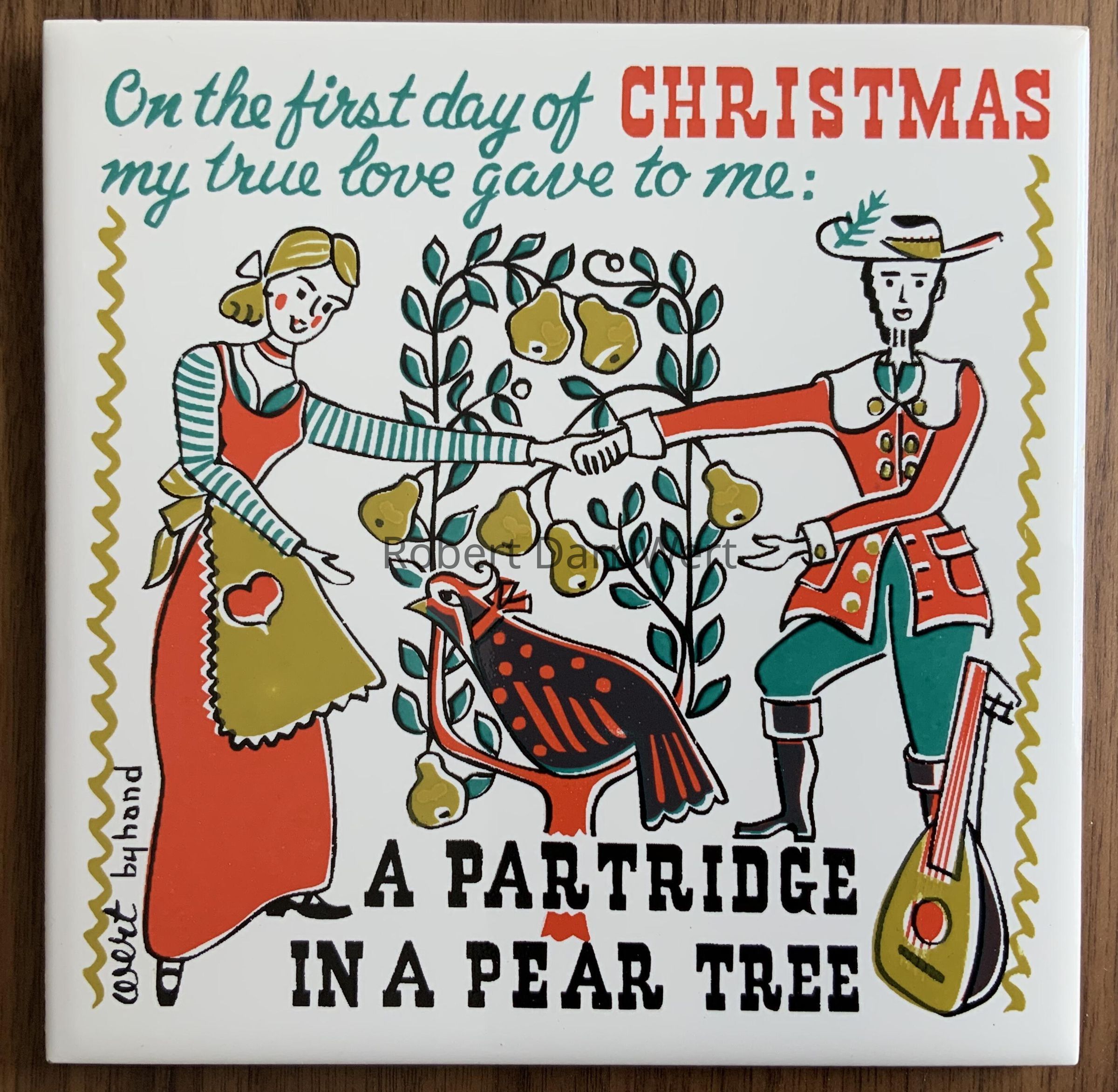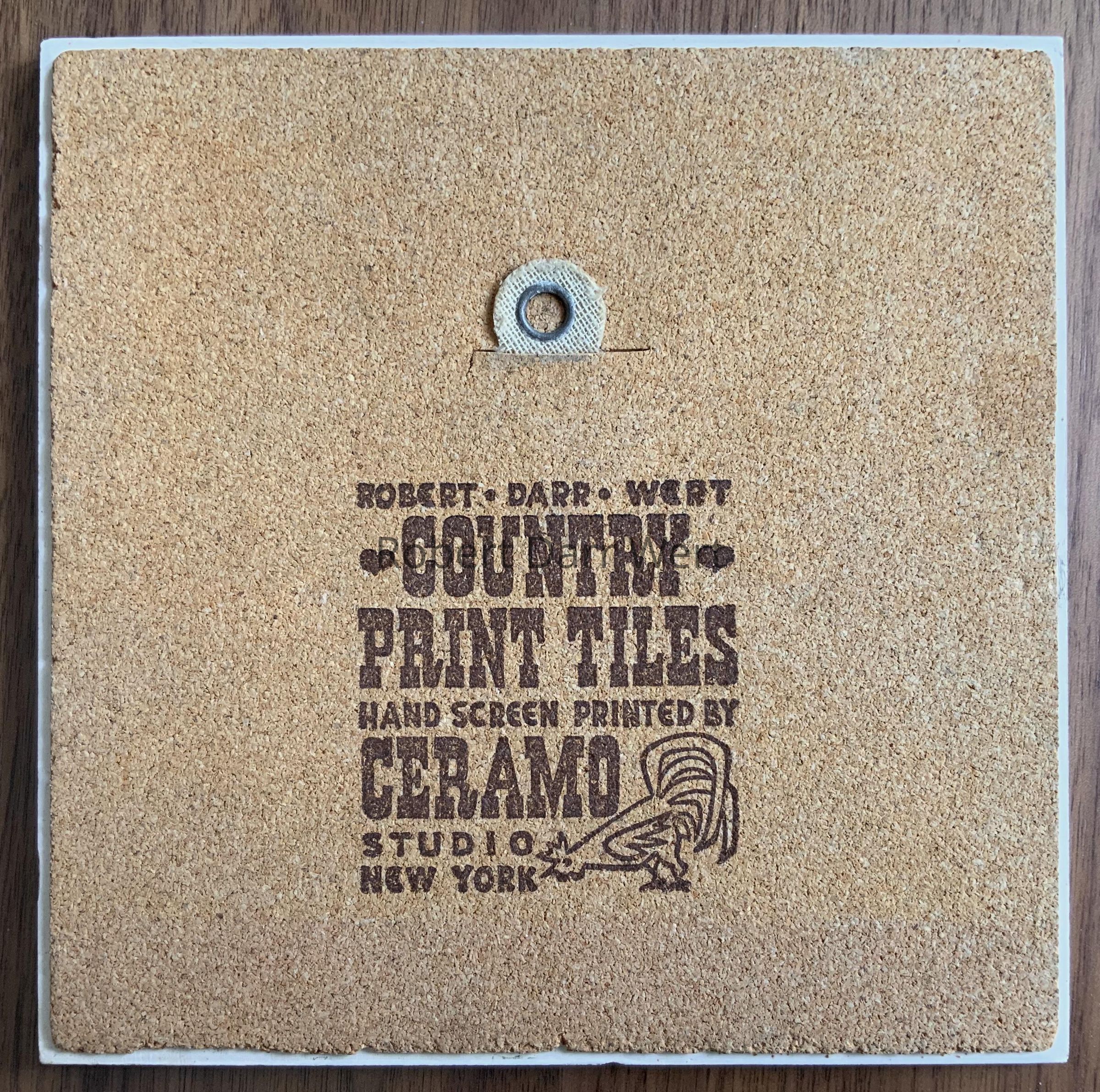 This tile is printed on the thinner tile base used by Country Prints/Ceramo Studio from 1962 onward.