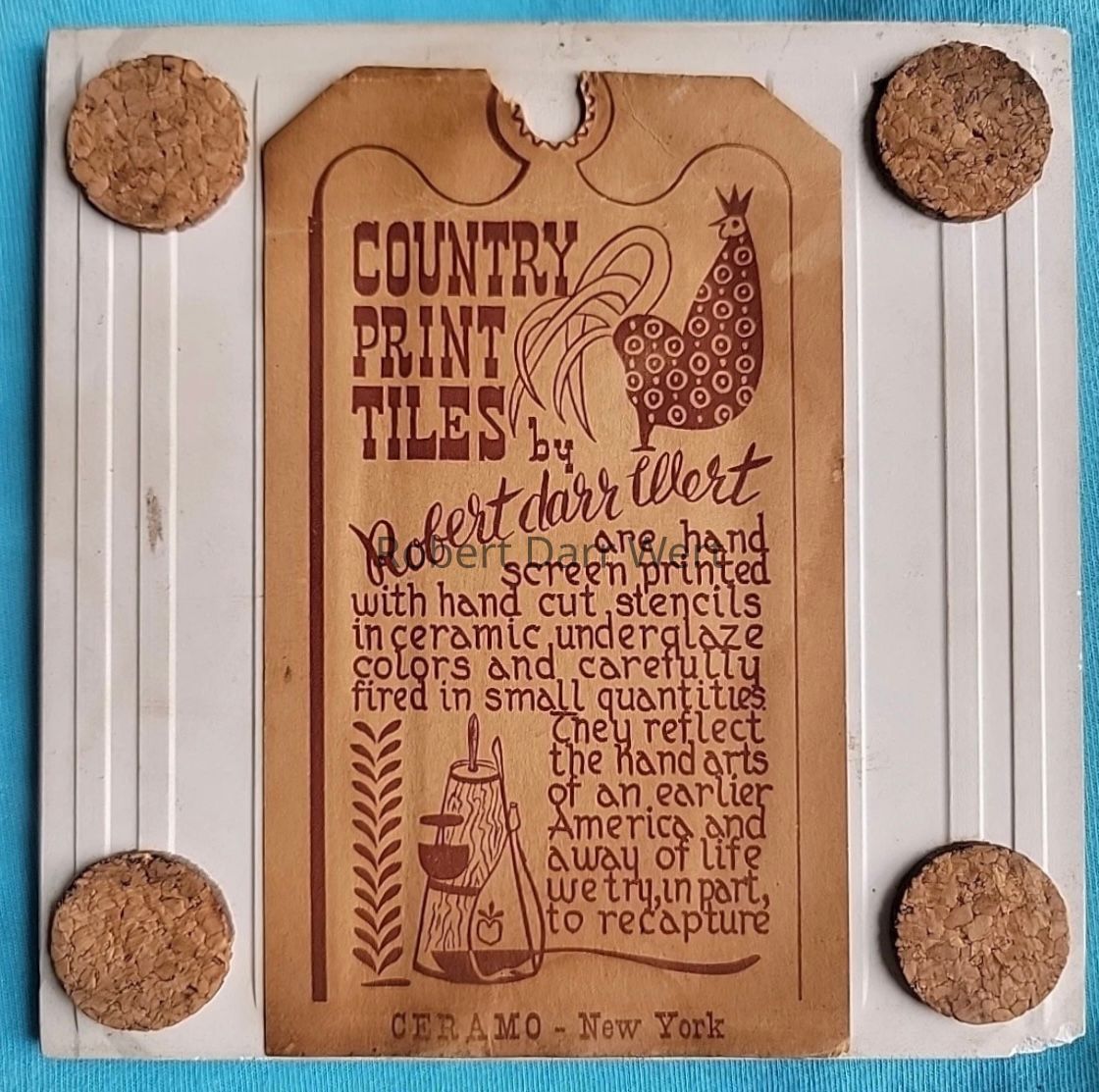 This tile appears in the brochure “Robert Darr Wert/Country Prints Tiles”, c.1960; see images.Made/Created
