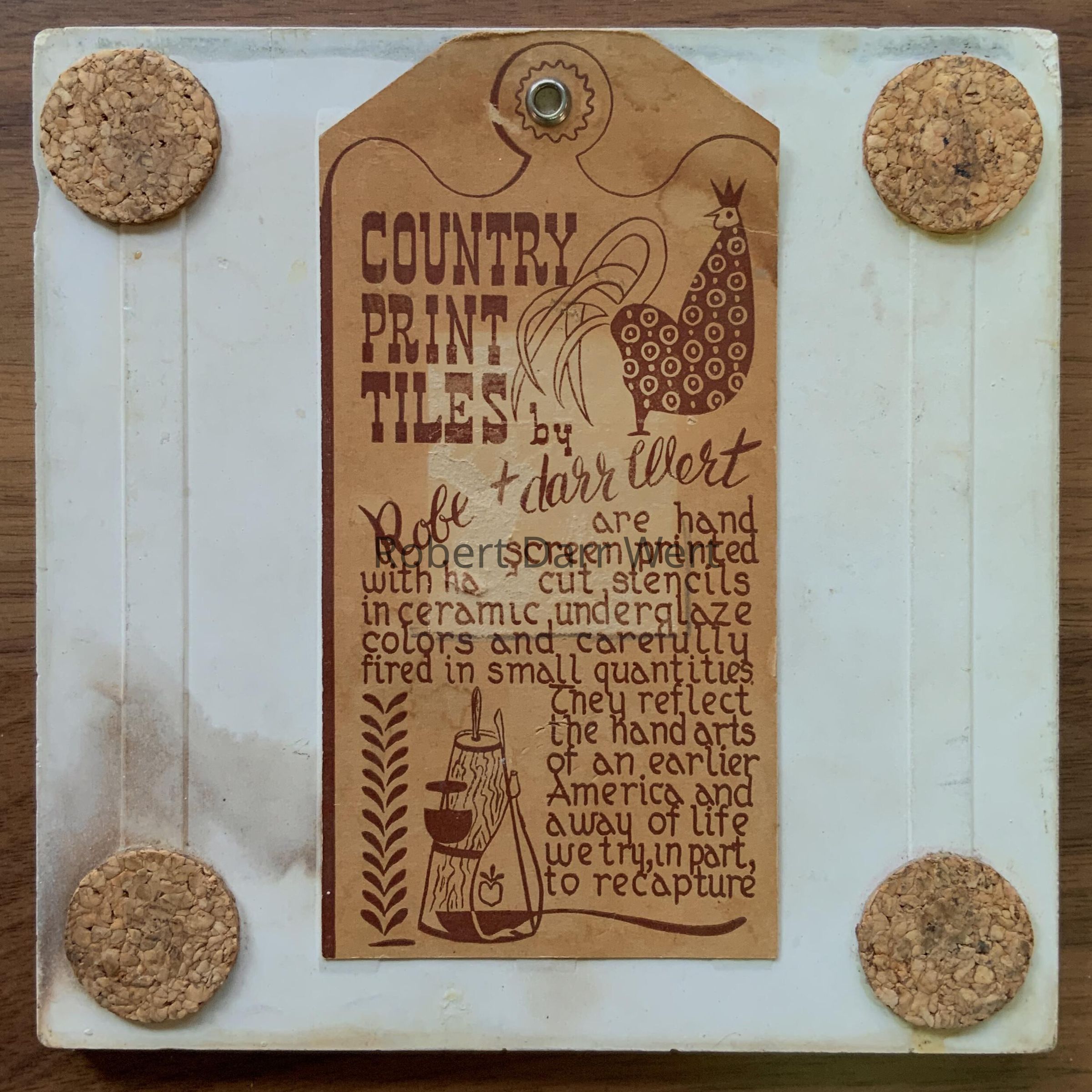 This design is printed on the thicker tile body used by Country Prints/Ceramo Studio prior to 1962.Inscription/Signature/Marks