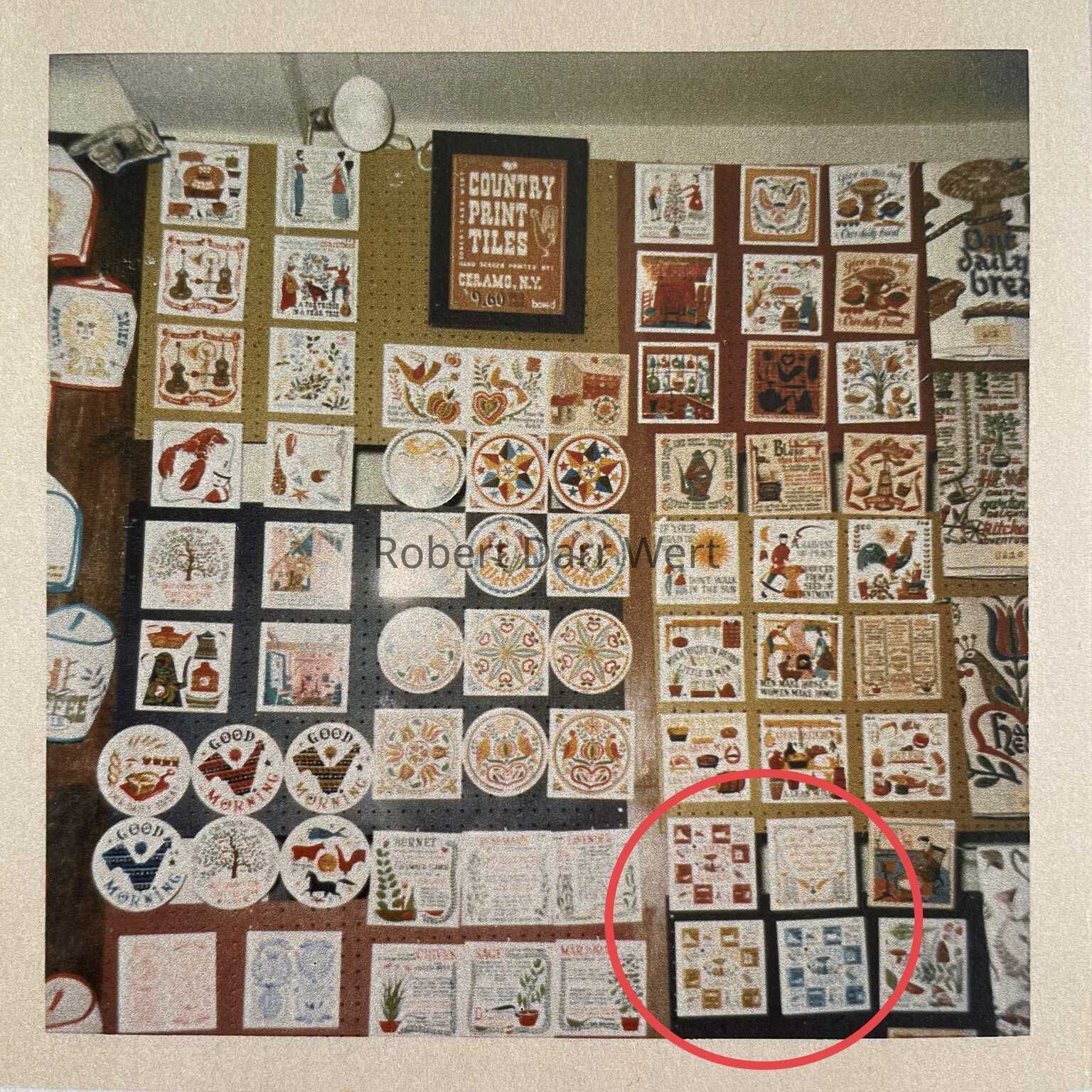 Tile: Almanac (TK) in red.: Collection of Sara Leeper. Images: PKM, unless noted.