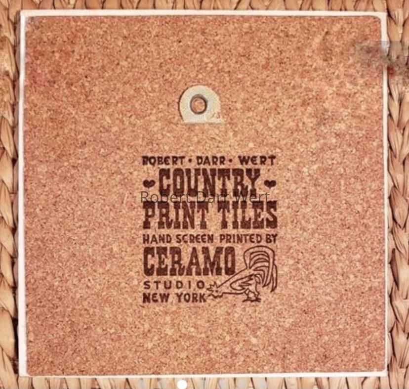 This design is printed on the thinner tile body used by Country Prints/Ceramo Studio from 1962 onward.