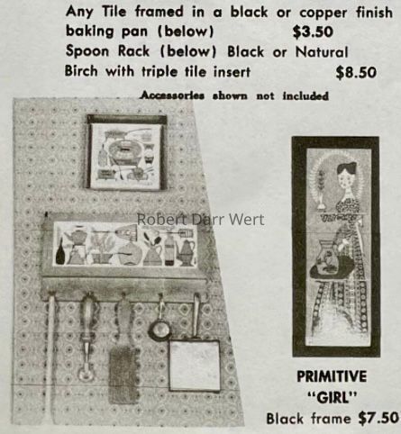 This frame appears in the c.1953 brochure “Robert Darr Wert/Country Print Tiles”; see images.Made/Created