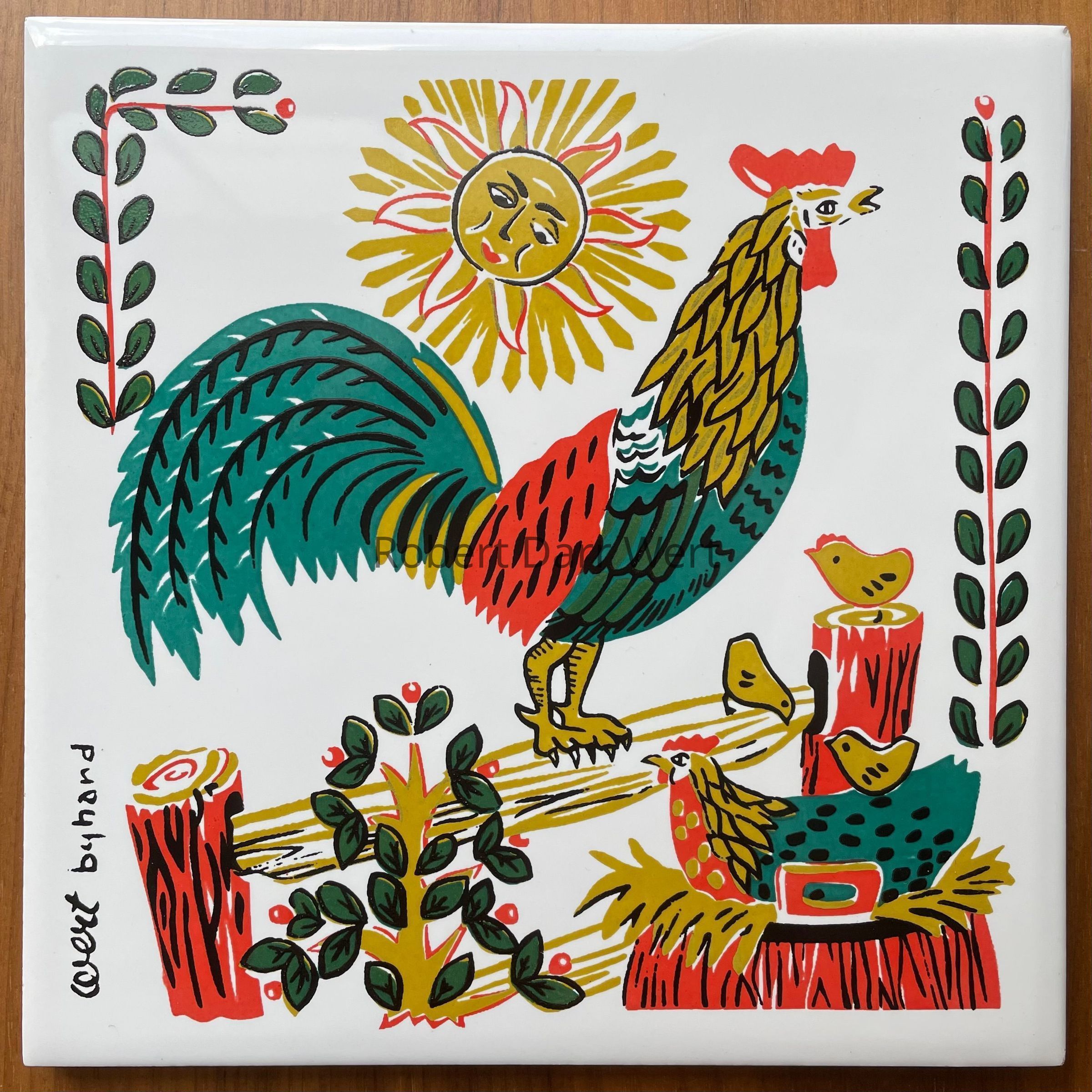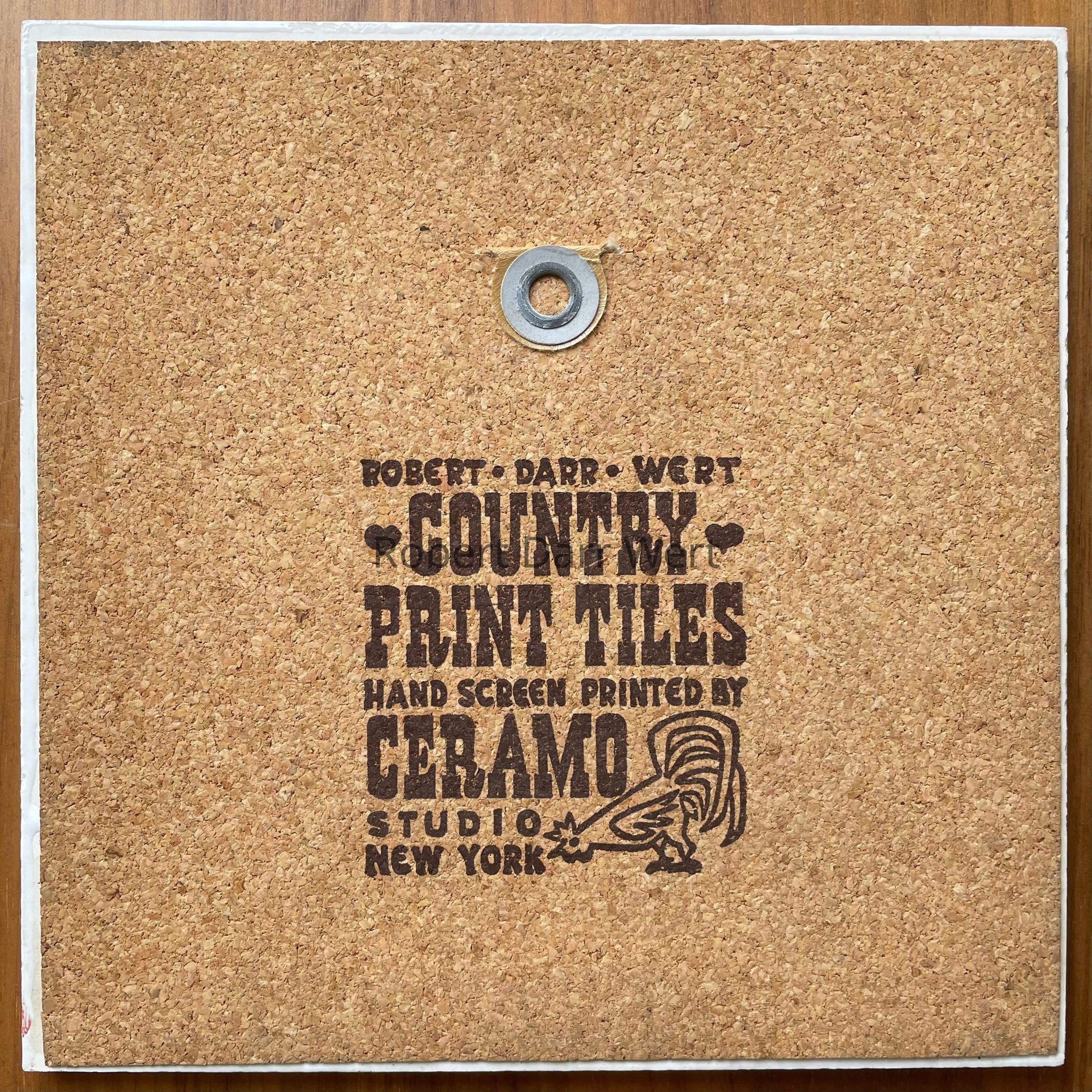 This design is printed on the thinner tile body used by Country Prints/Ceramo Studio from 1962 onward.