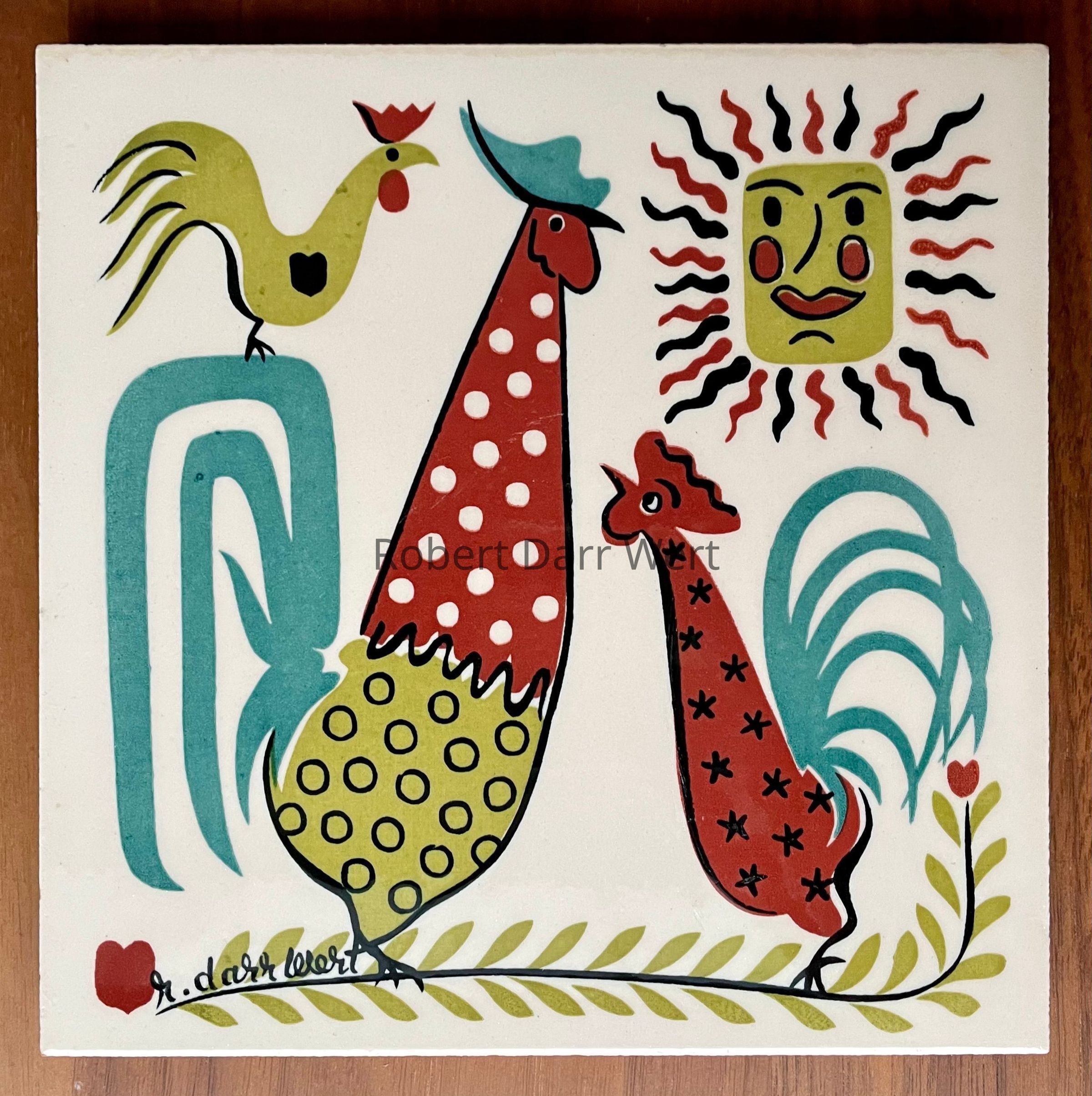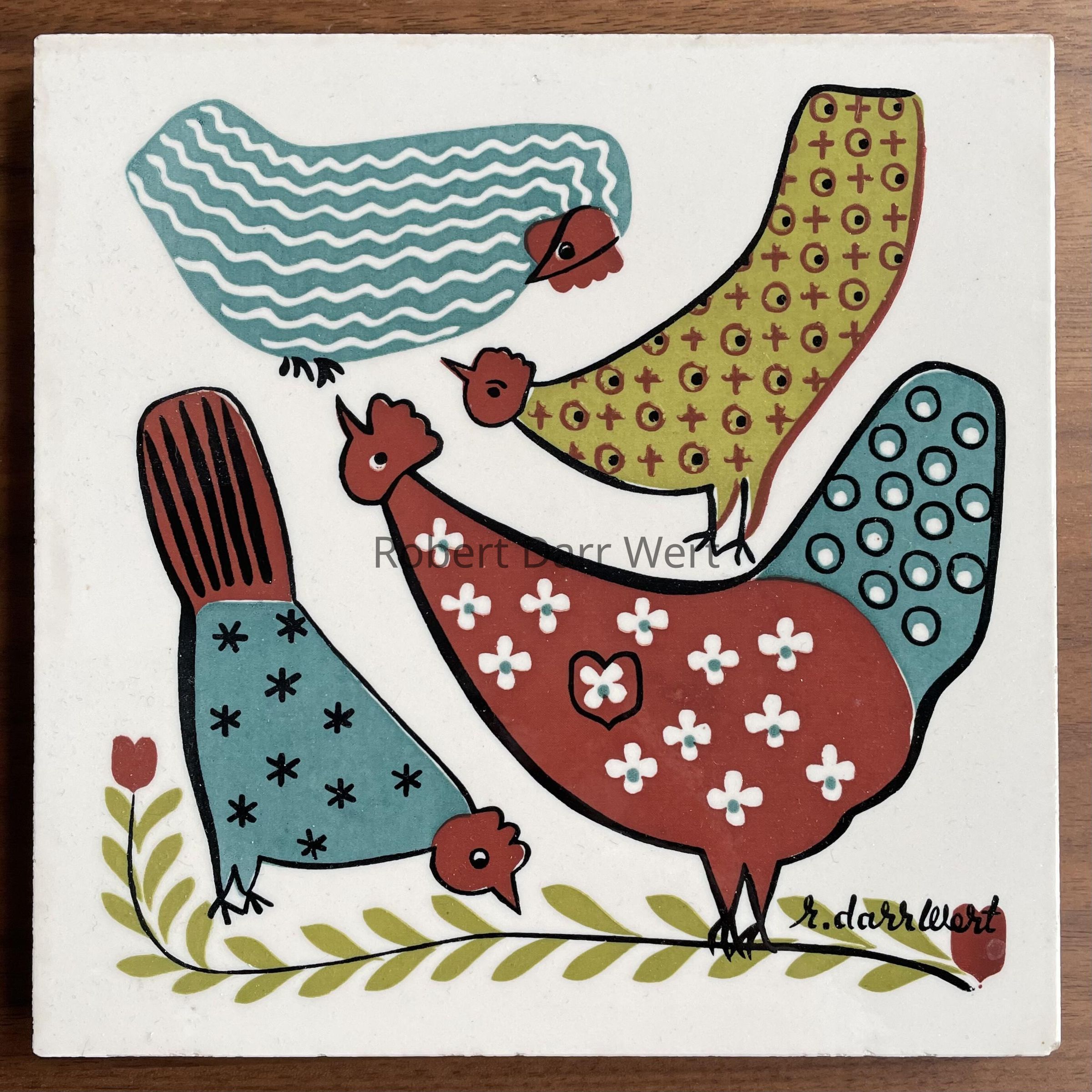 This design is printed on the thicker tile body used by Country Prints/Ceramo Studio prior to 1962.