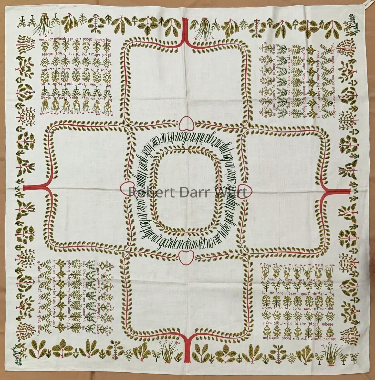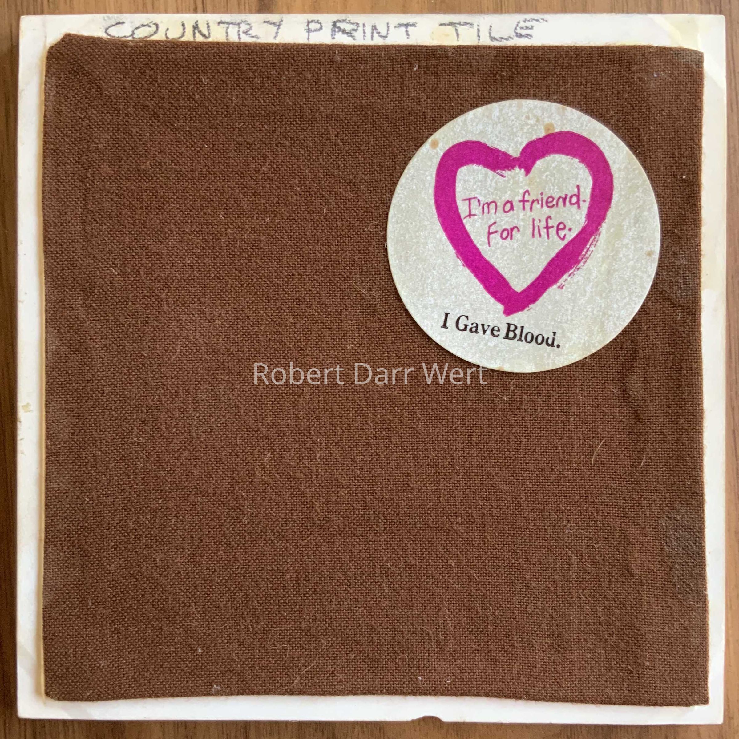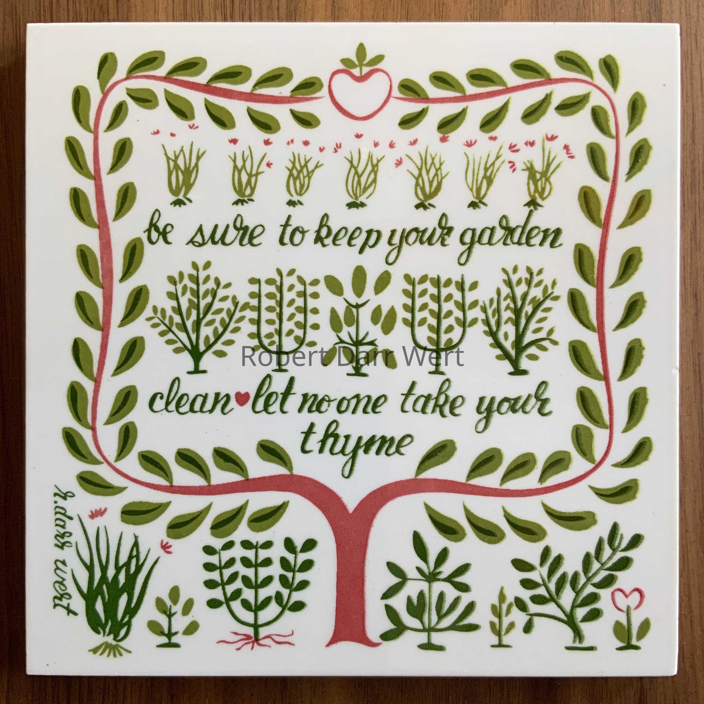 This tile appears in the c.1953 brochure “Robert Darr Wert/Country Print Tiles”, and the c.1960 brochure “Robert Darr Wert/Country Prints Tiles”. The c.1955 tile brochure indicates this tile matches the Herb Garden luncheon square (tablecloth).